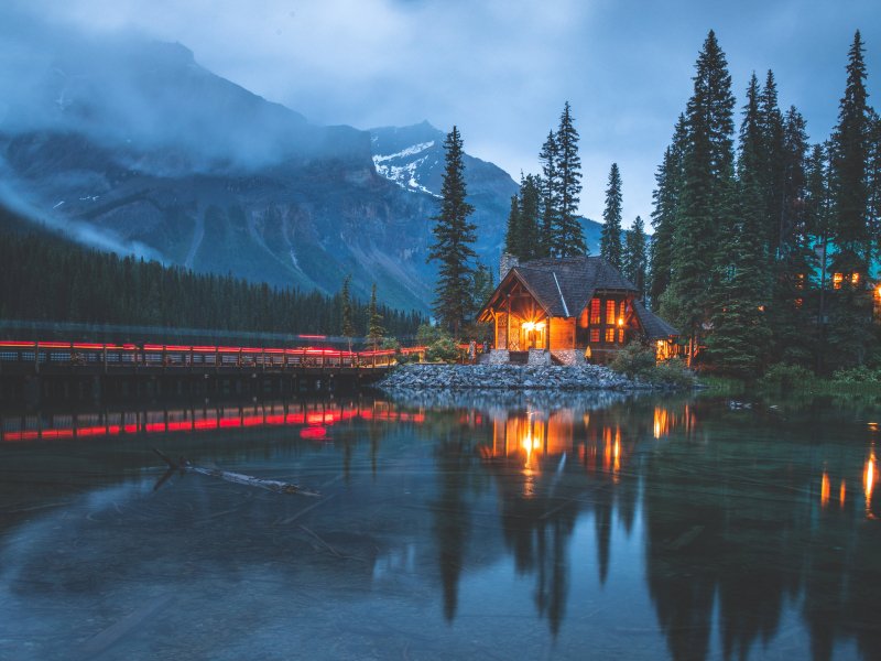Обои: дом у озера, озеро, ночь - 800x600