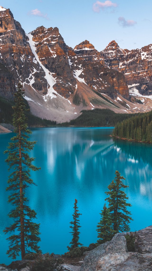Обои: озеро Морейн, пейзаж, горы - 640x1136