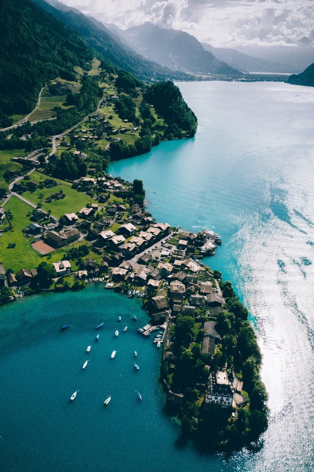 Обои: Гриндельвальд, Швейцария, вид с высоты птичьего полета - 640x960