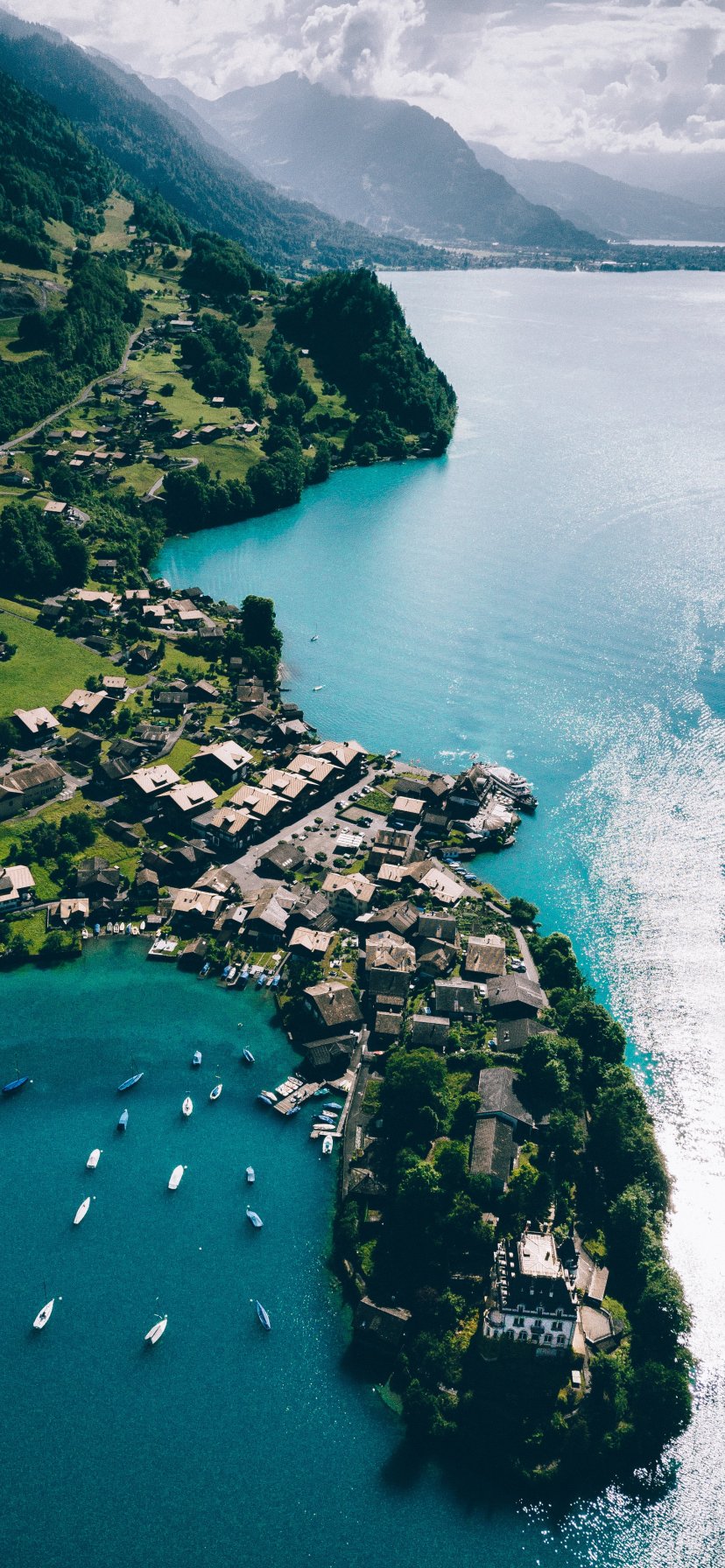 Обои: Гриндельвальд, Швейцария, вид с высоты птичьего полета - 828x1792