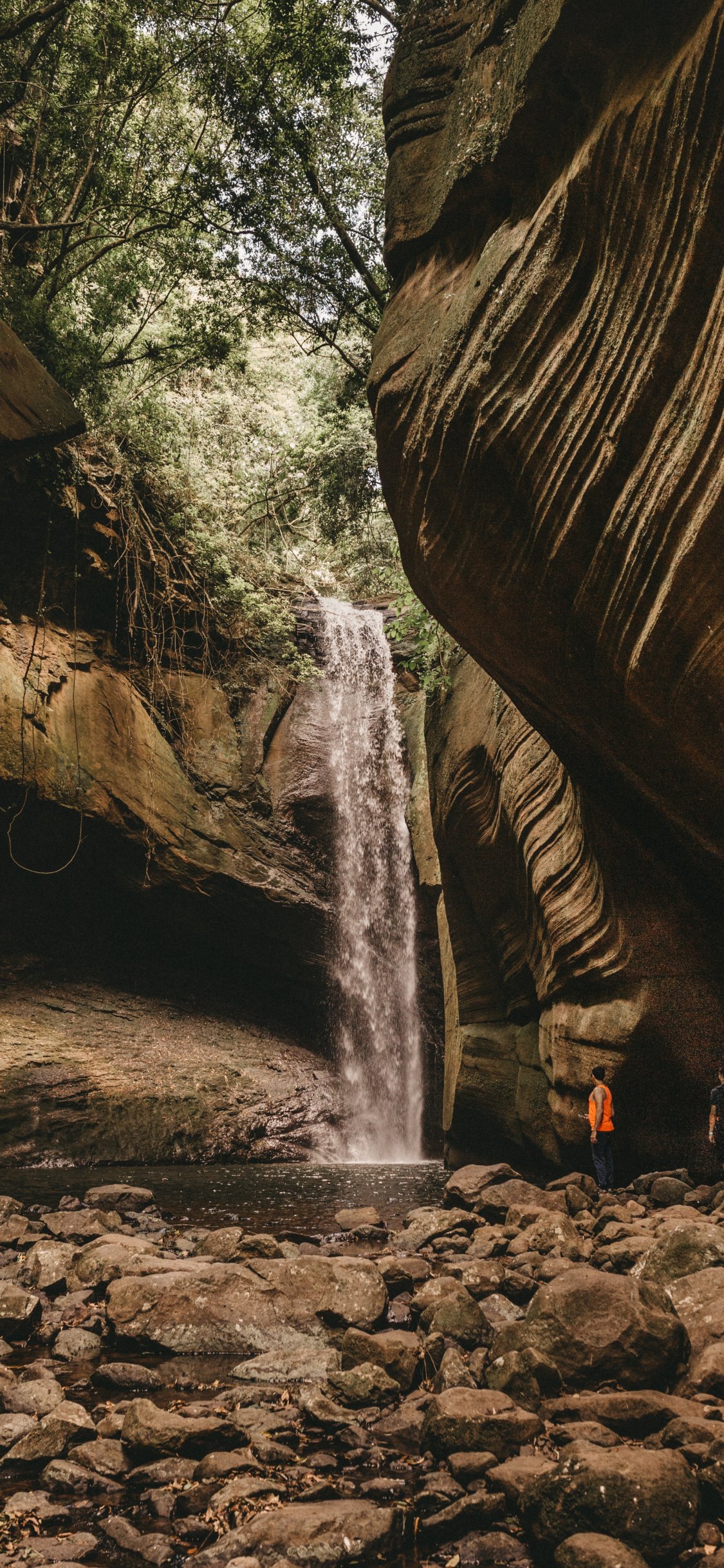 Обои: водопад, пейзаж, лес - 1125x2436