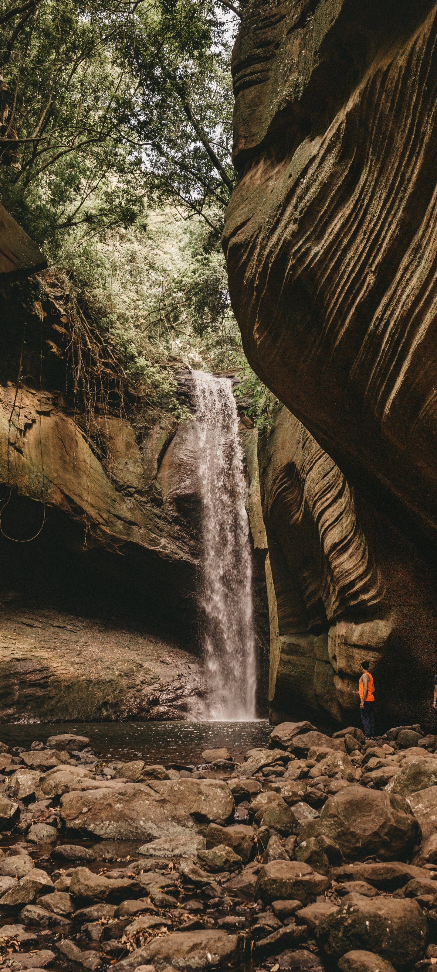 Обои: водопад, пейзаж, лес - 1440x3200