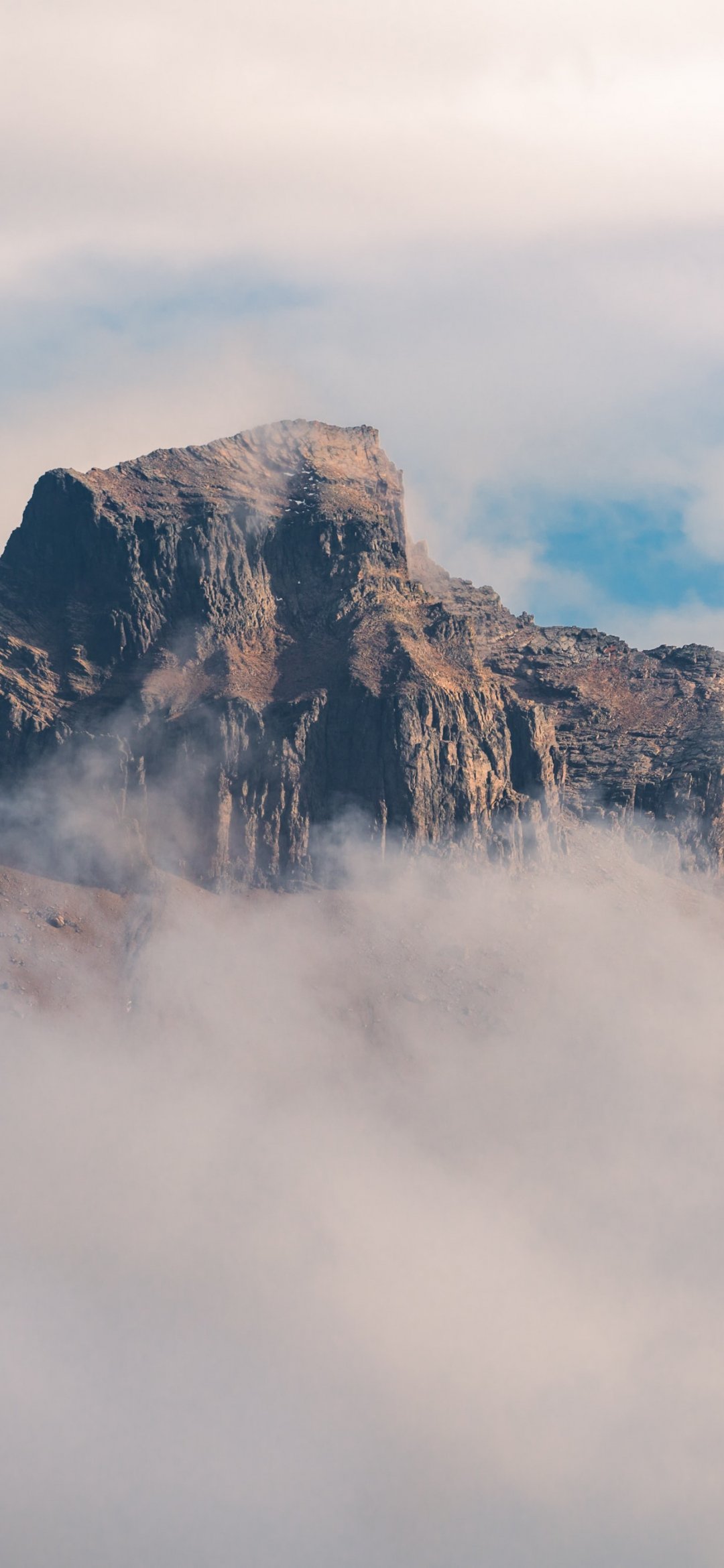 Обои: туман, горный хребет, облака - 1080x2340