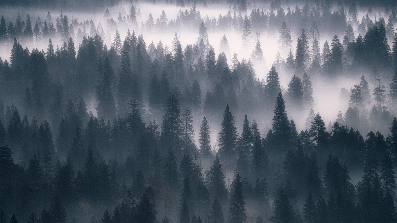 Обои: лес, туман, серый - 1366x768