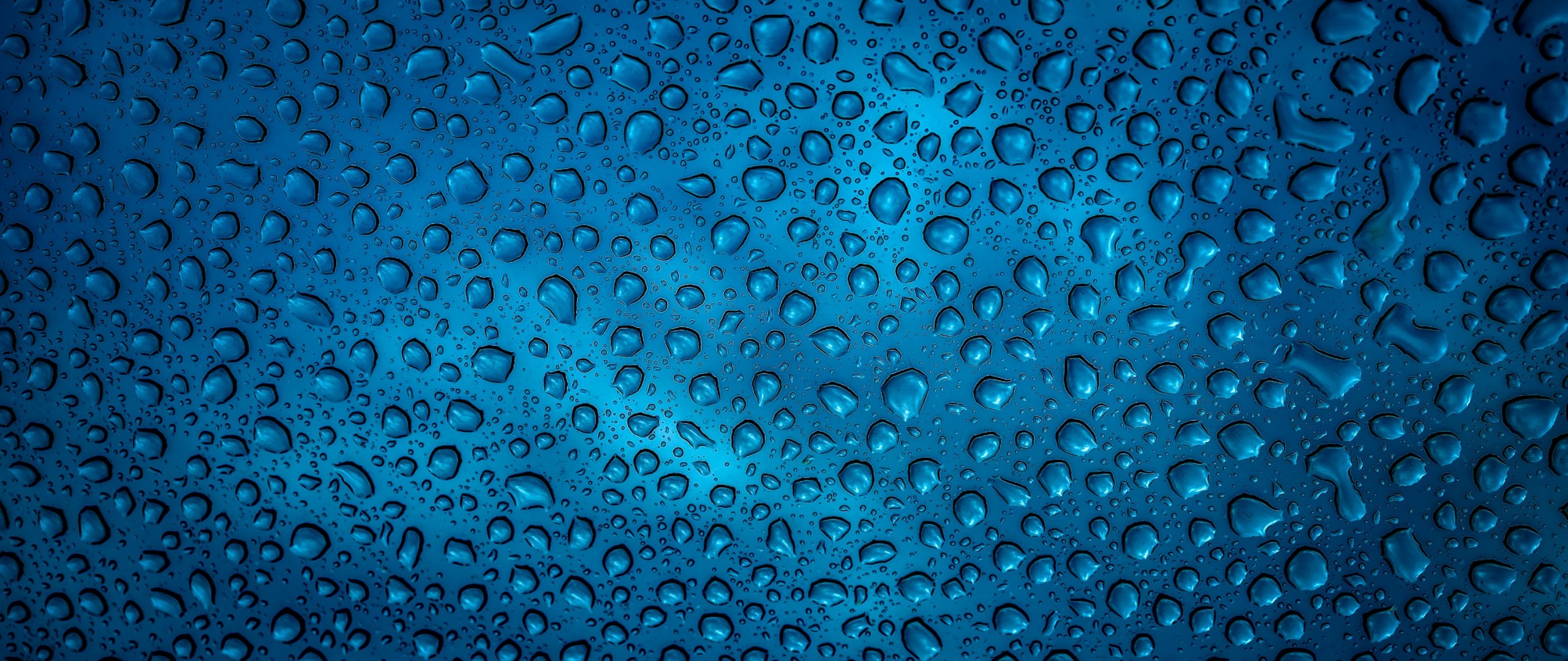 Обои: капля дождя, синий, фон - 2560x1080