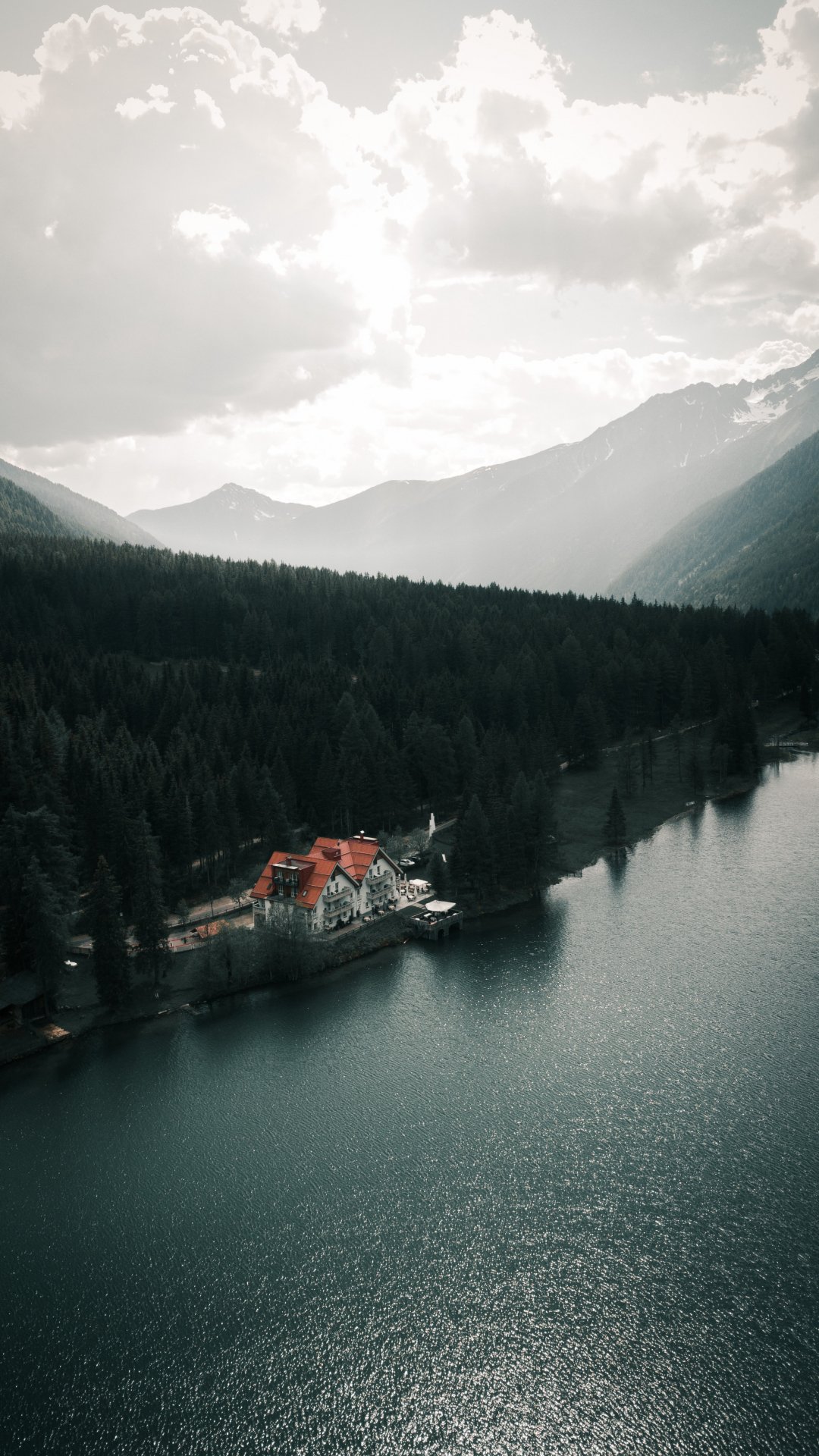 Обои: дом у озера, вид с высоты птичьего полета, зеленый - 1080x1920