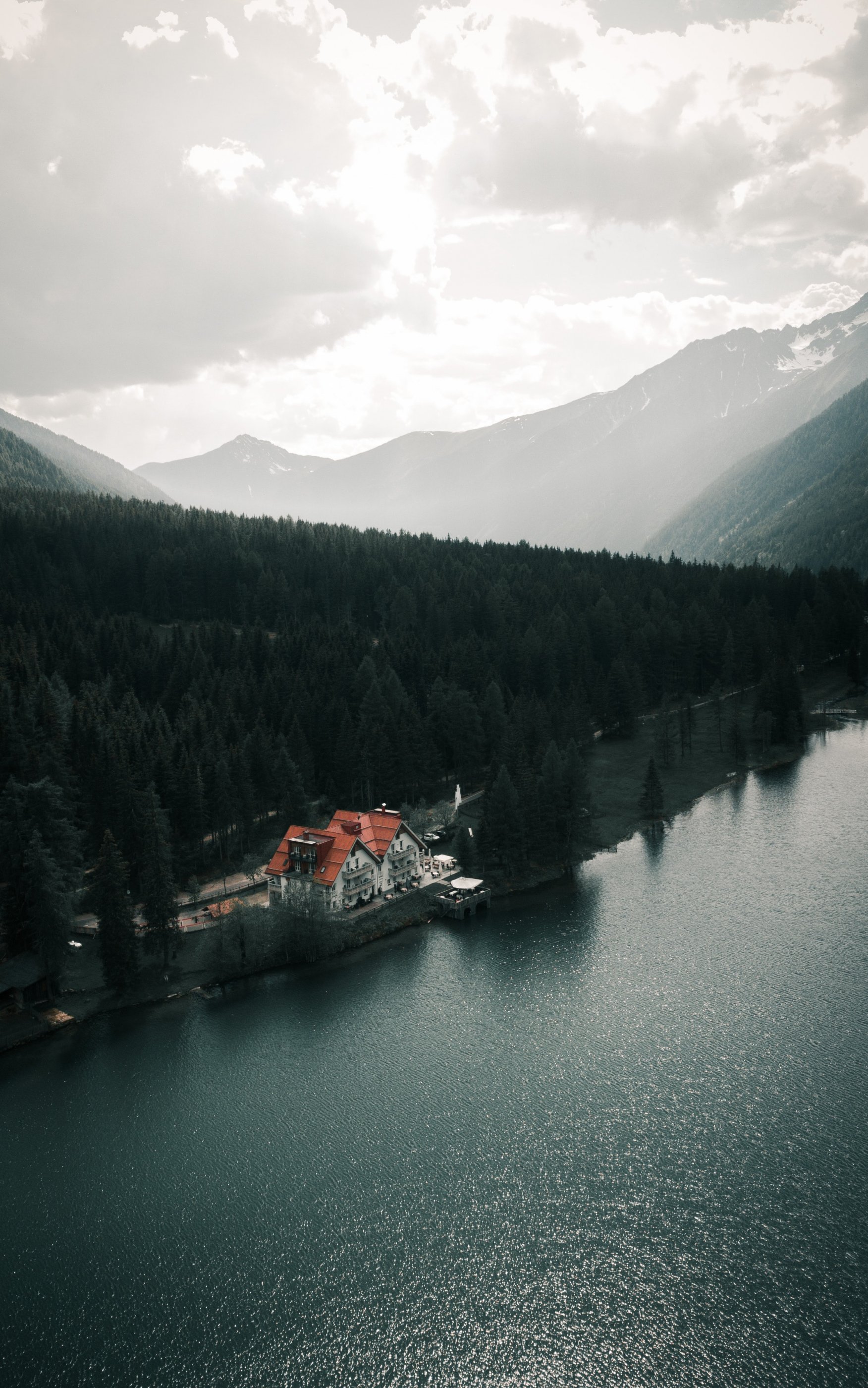 Обои: дом у озера, вид с высоты птичьего полета, зеленый - 1752x2800