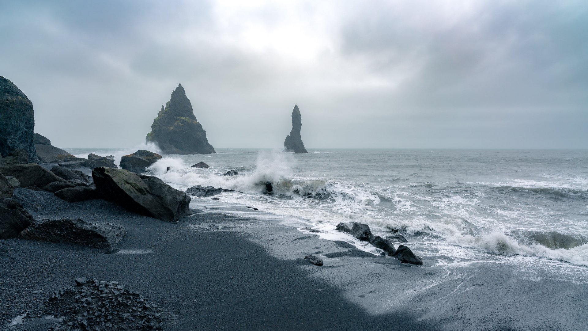 Обои: Исландия, море, волны - 1920x1080