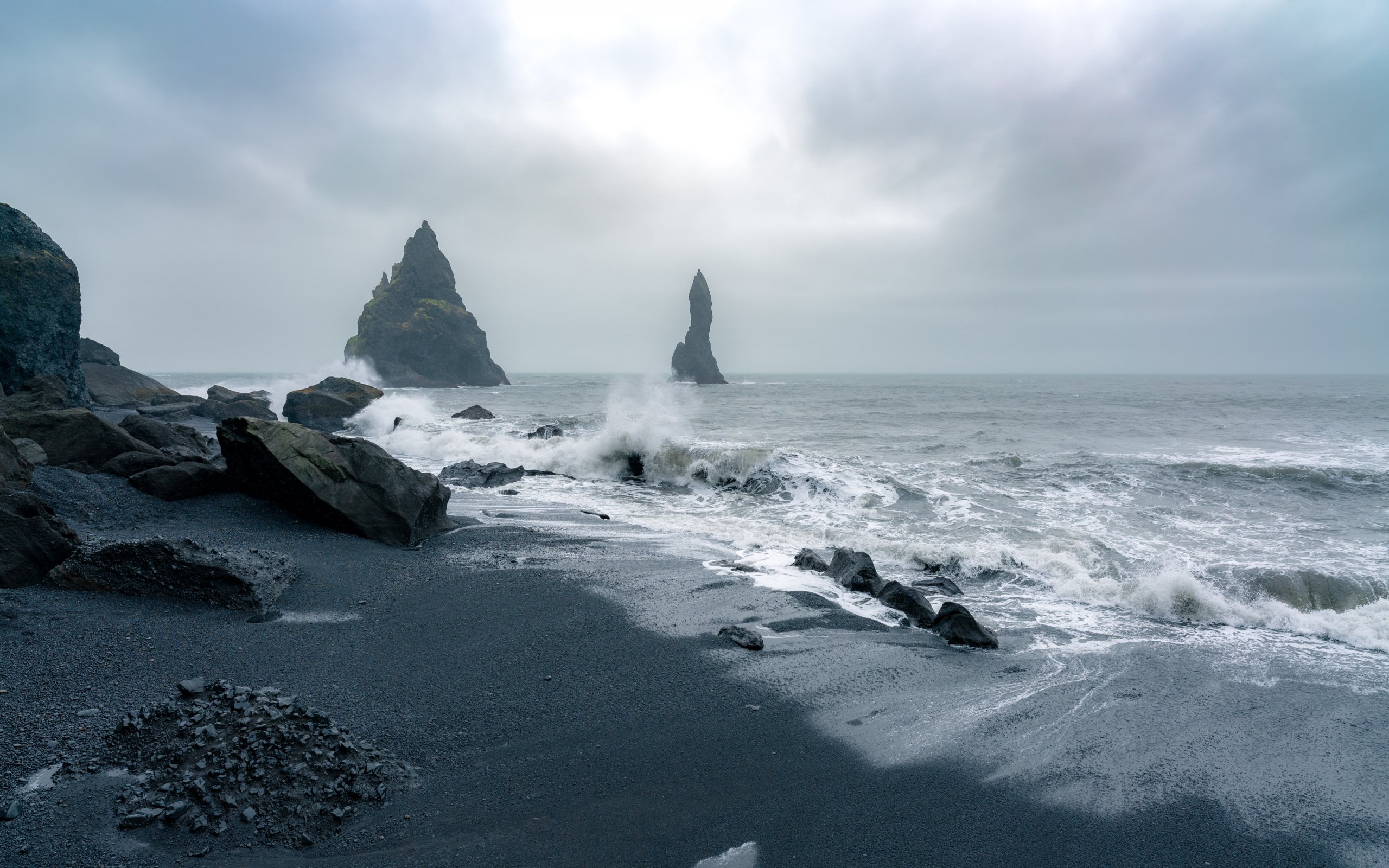 Обои: Исландия, море, волны - 2560x1600