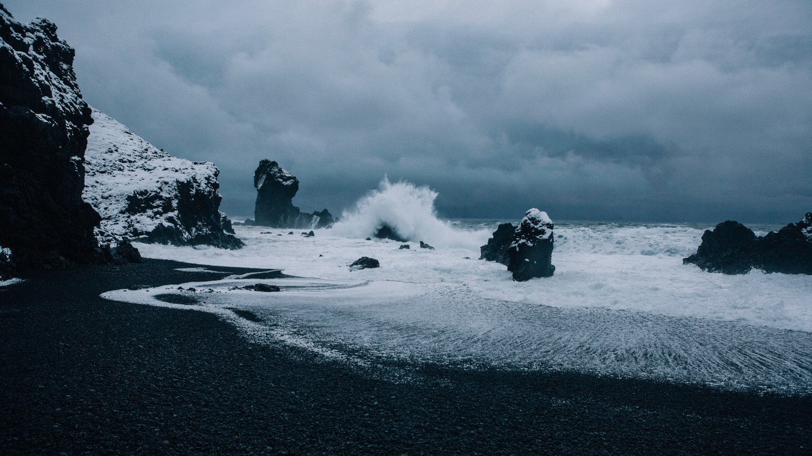 Обои: Исландия, море, волны - 1600x900