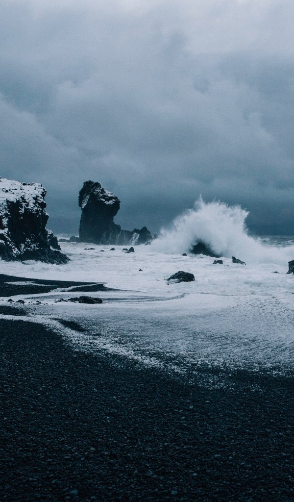 Обои: Исландия, море, волны - 600x1024