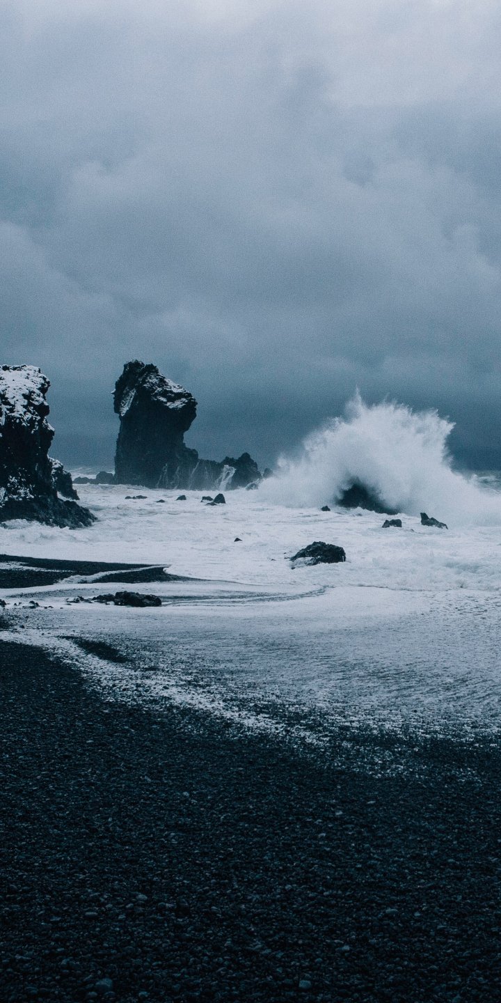 Обои: Исландия, море, волны - 720x1440