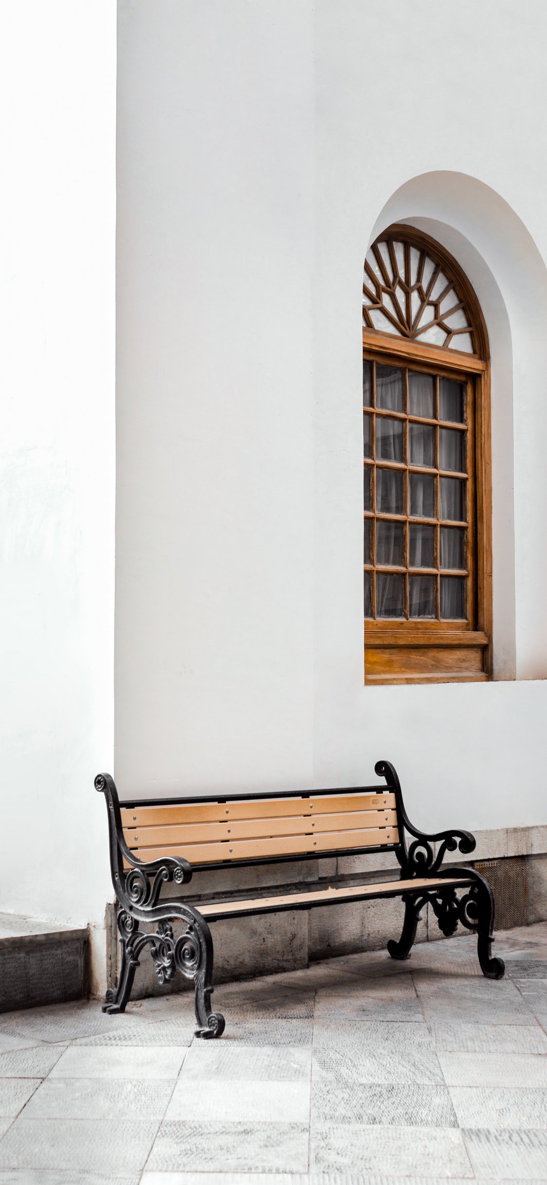 Обои: скамейка, эстетика белого - 1125x2436
