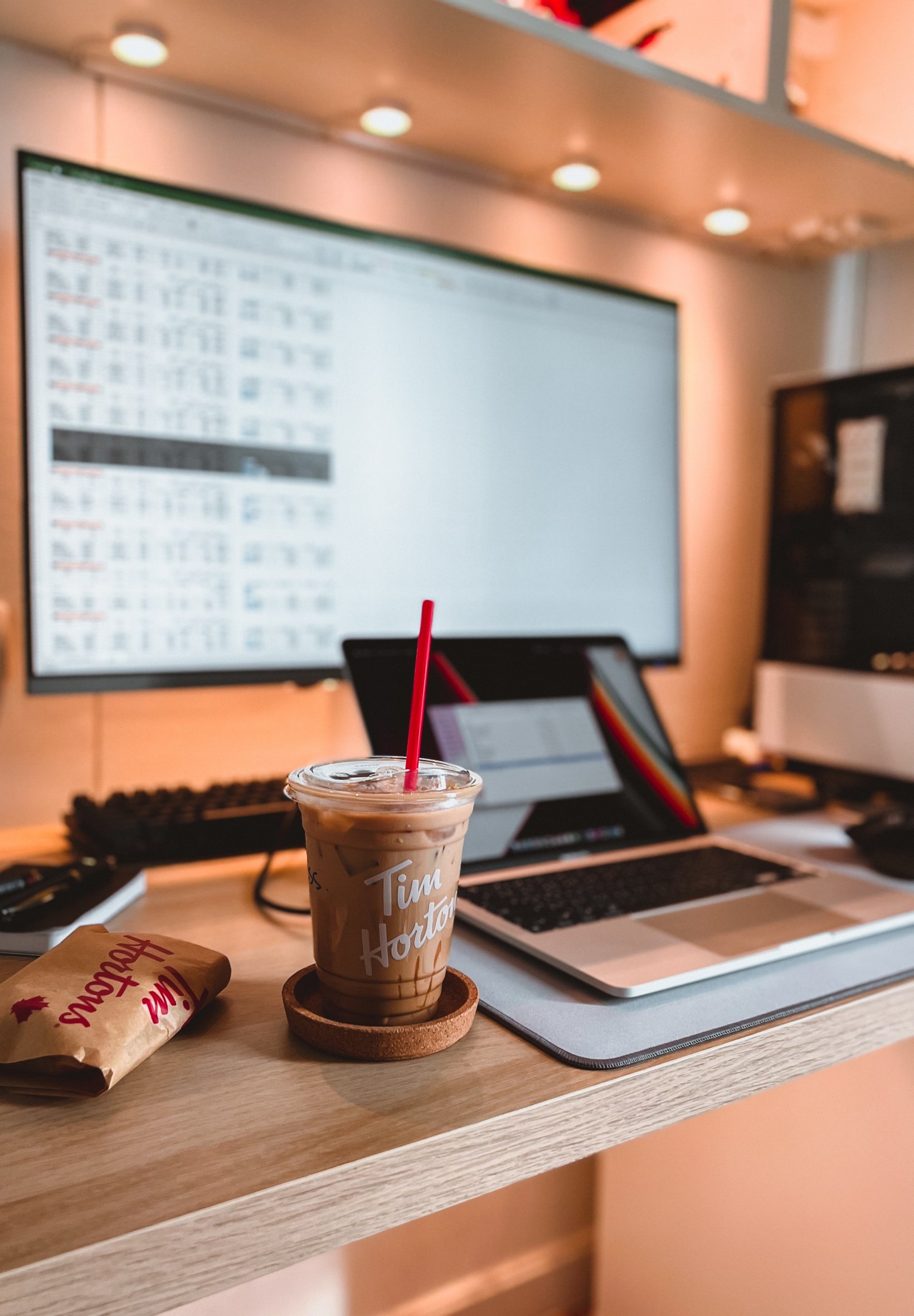 ноутбук, кофе, рабочее место