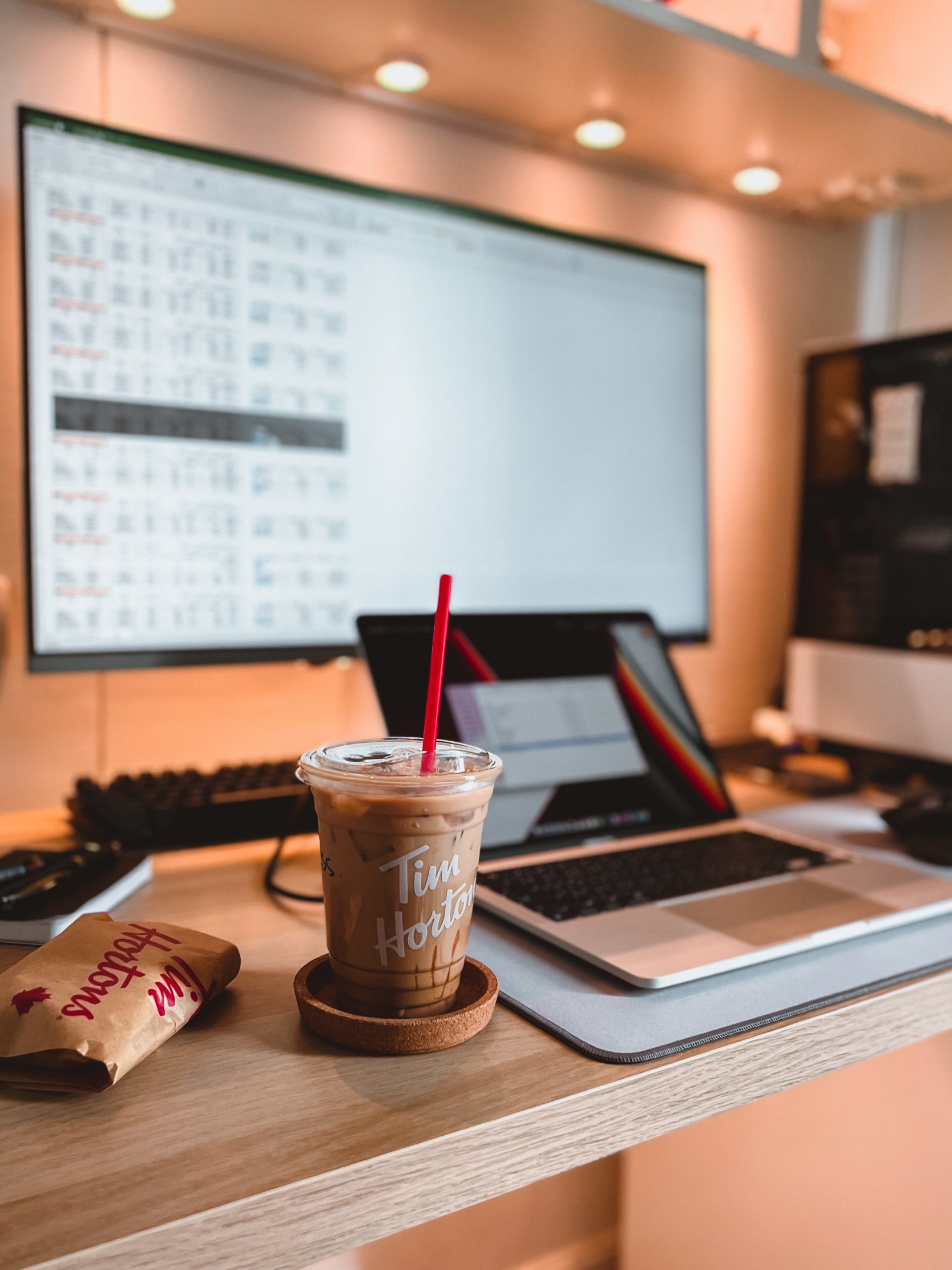 ноутбук, кофе, рабочее место