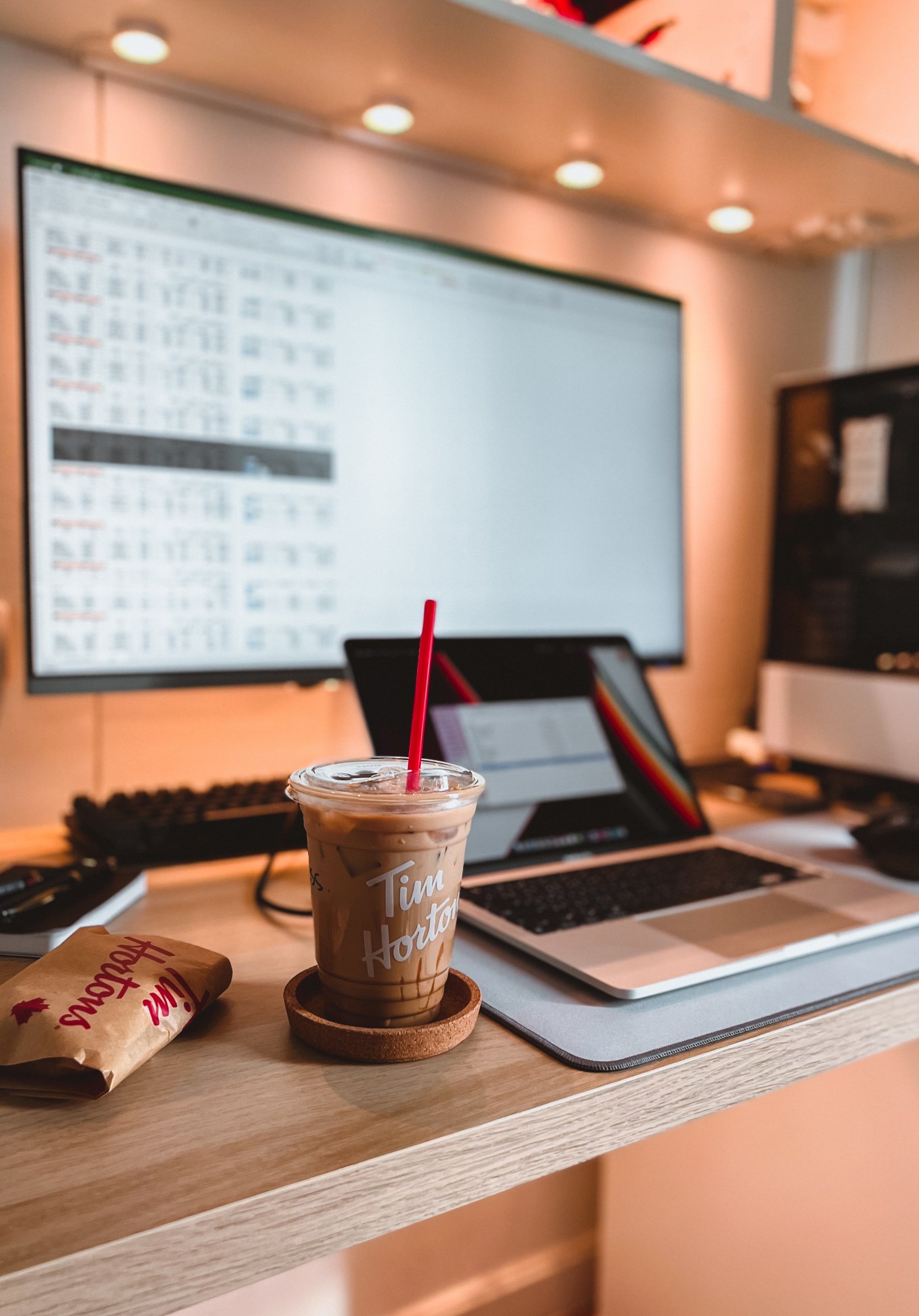 ноутбук, кофе, рабочее место