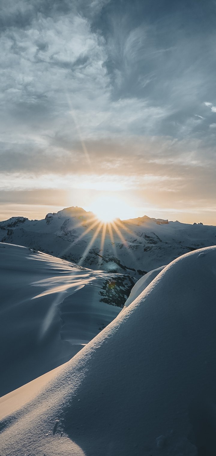 Обои: восход, зима, снег - 720x1520