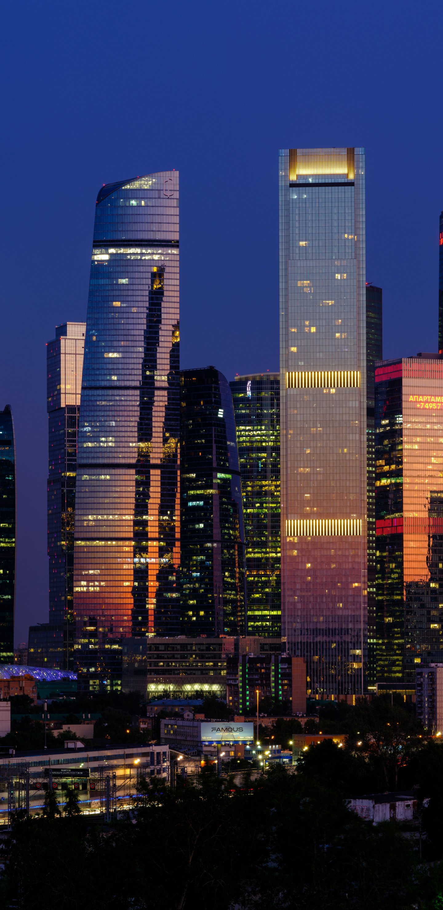 Обои: Москва-Сити, небоскребы, ночь - 1440x2960