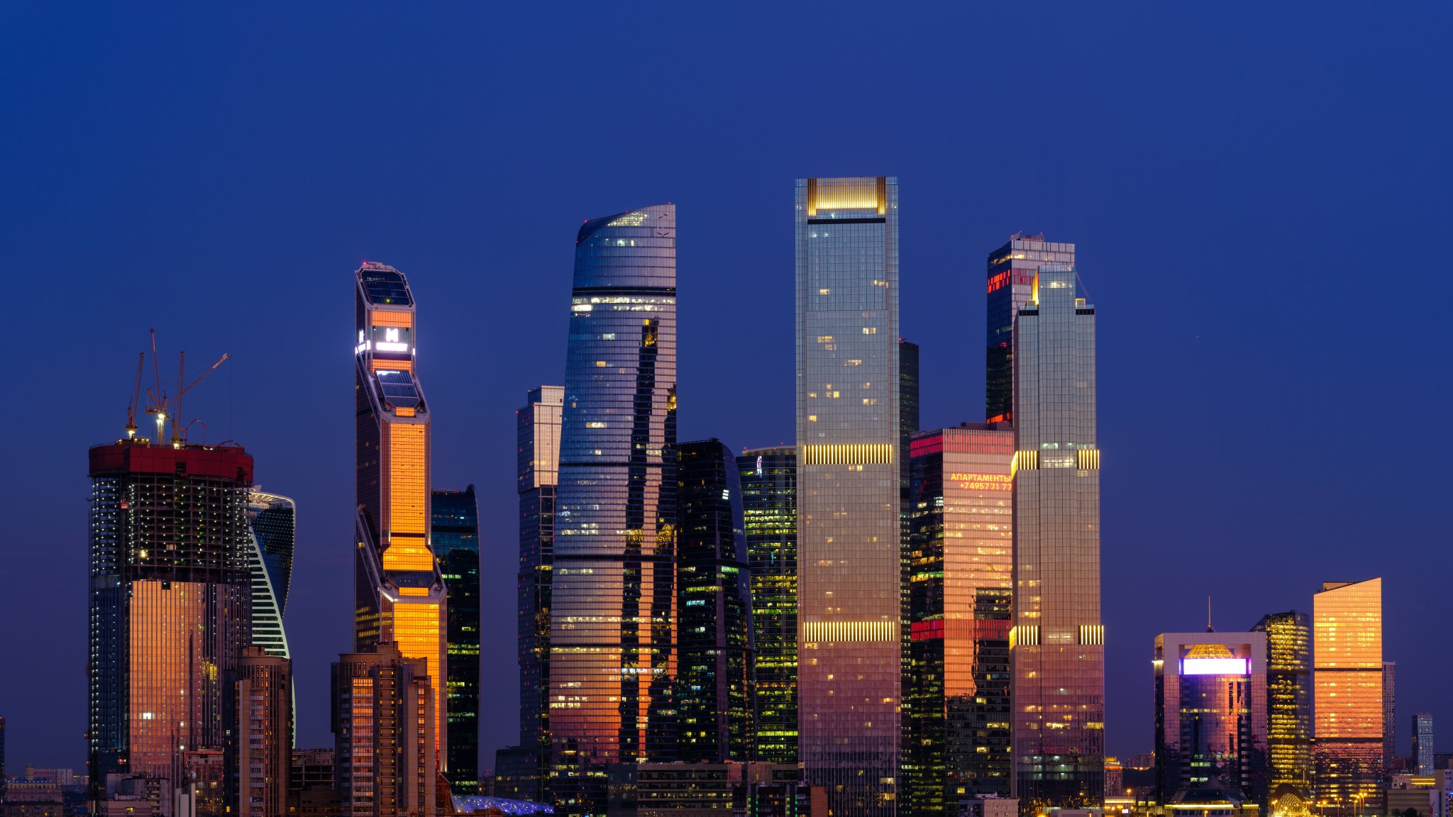 Обои: Москва-Сити, небоскребы, ночь - 2048x1152