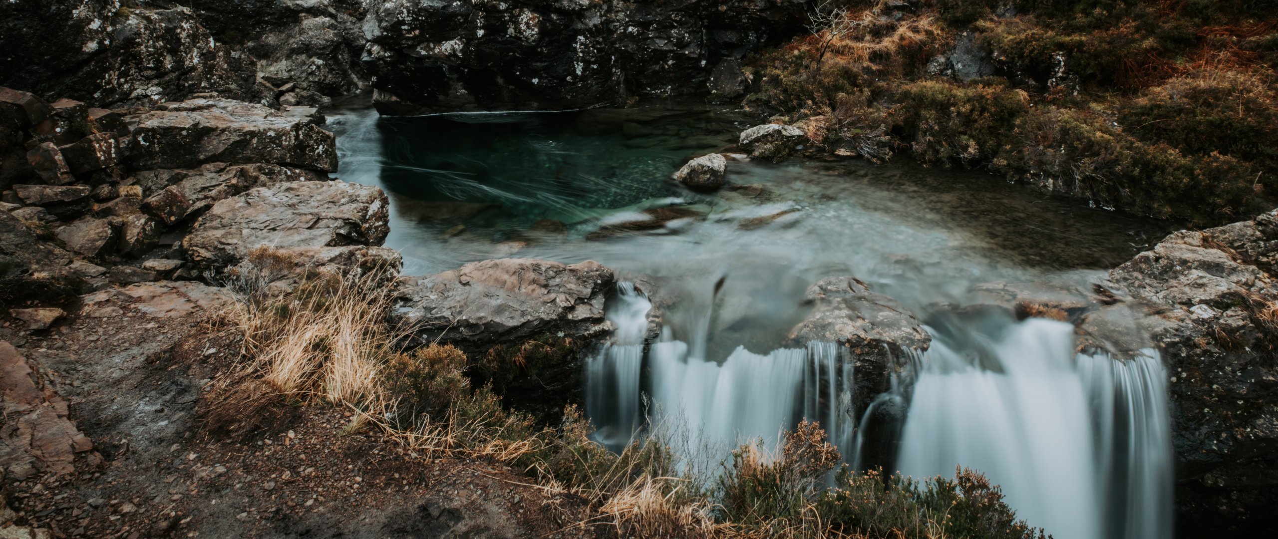 Обои: Сказочные бассейны, пейзаж, Шотландия - 2560x1080
