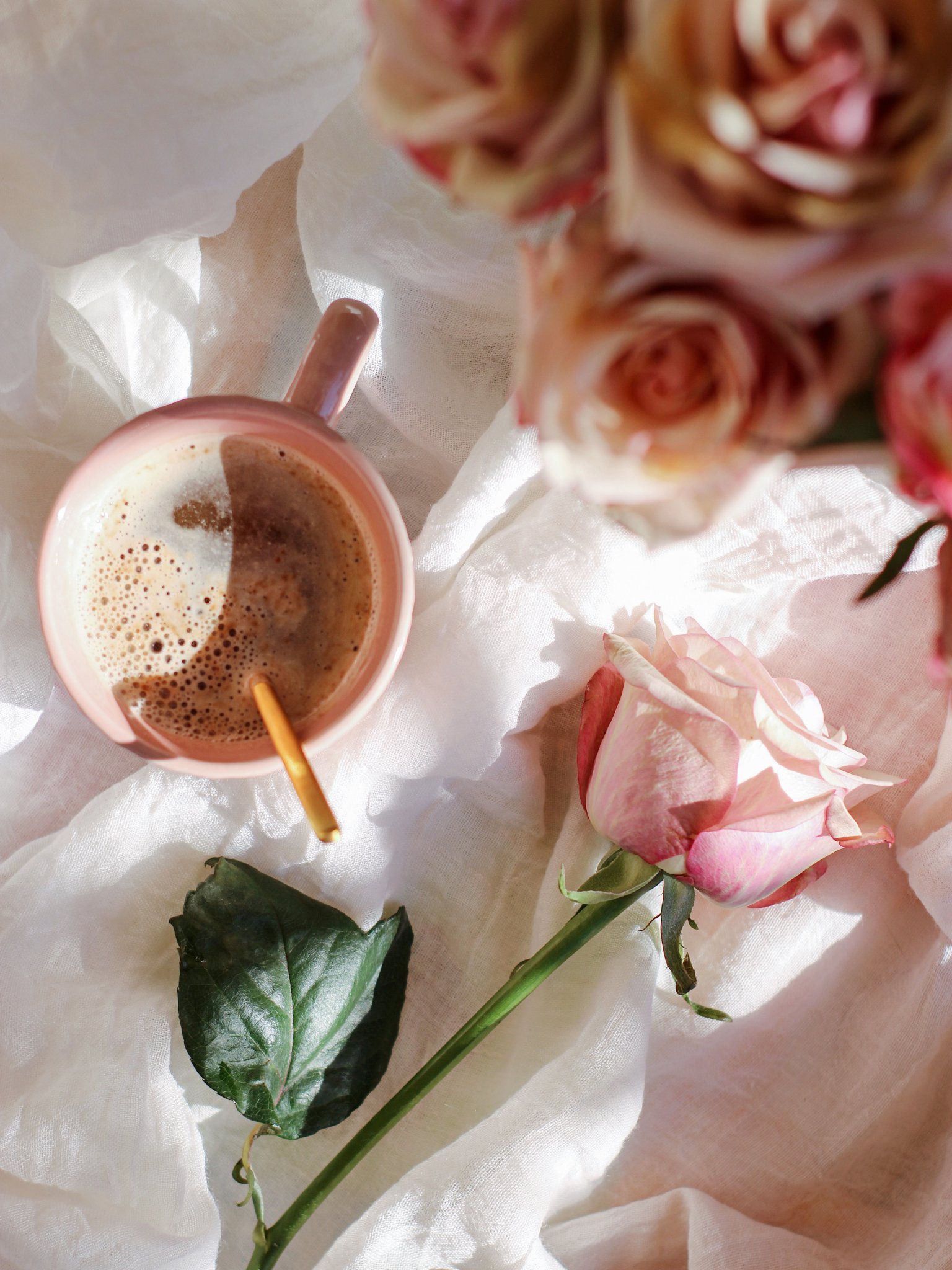 Обои: чашка кофе, эстетика розового - 1536x2048