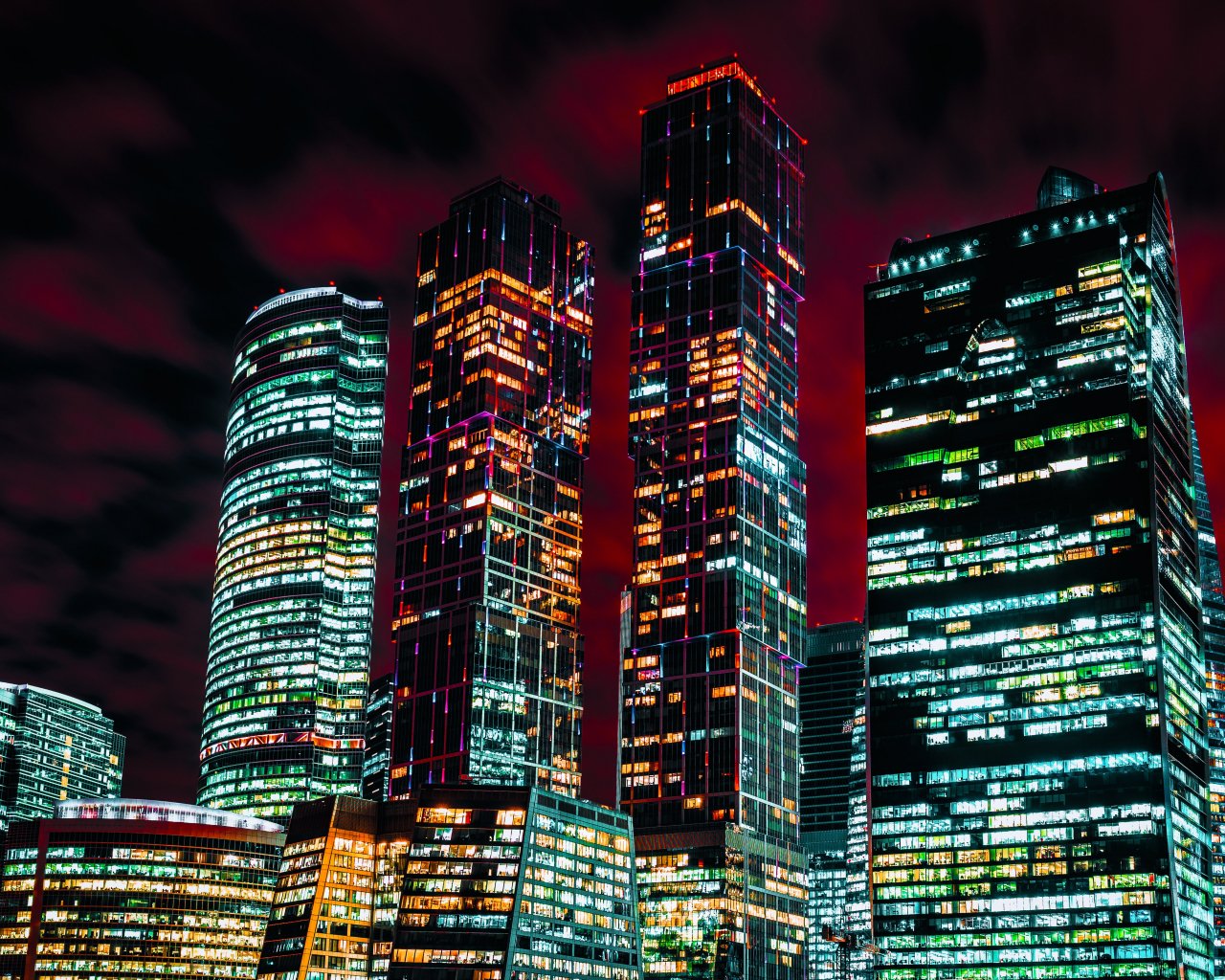 Обои: Москва-Сити, небоскребы, ночь - 1280x1024