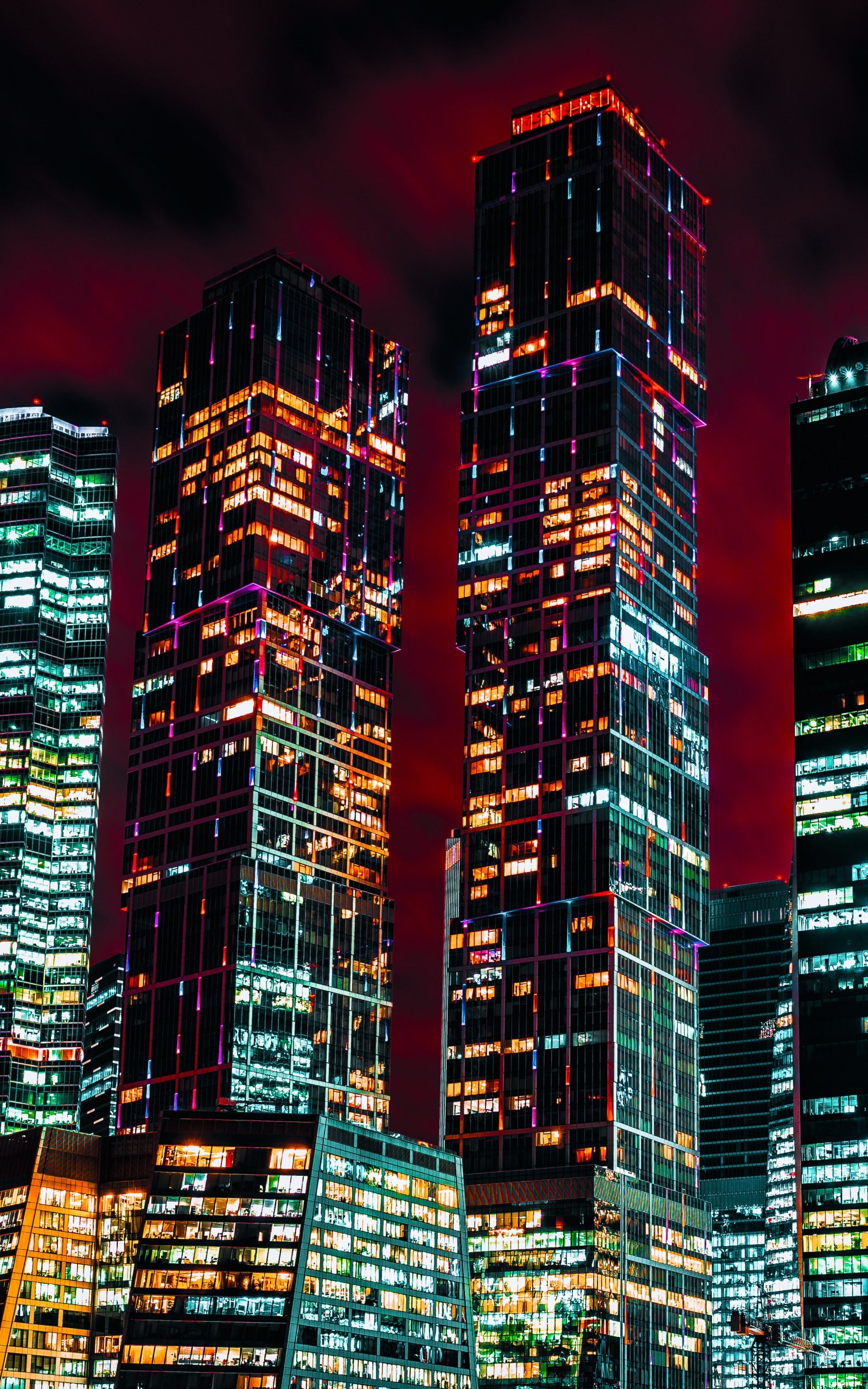 Обои: Москва-Сити, небоскребы, ночь - 1600x2560