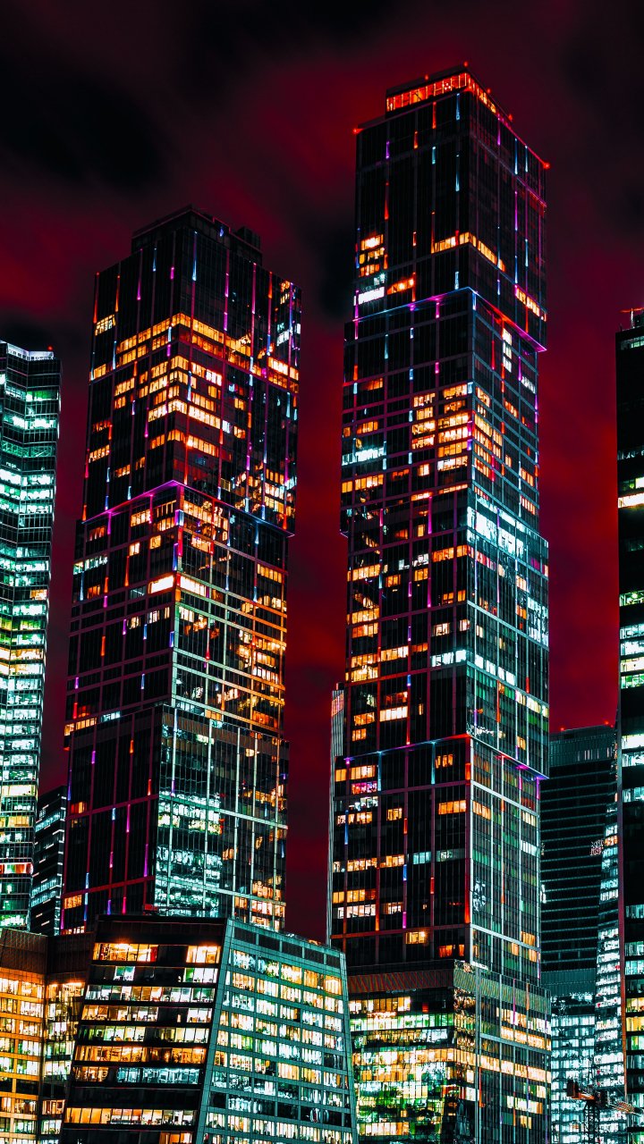 Обои: Москва-Сити, небоскребы, ночь - 720x1280