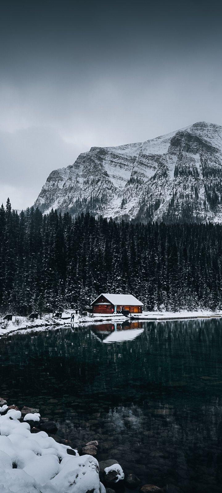 Обои: дом у озера, снег, зима - 720x1600