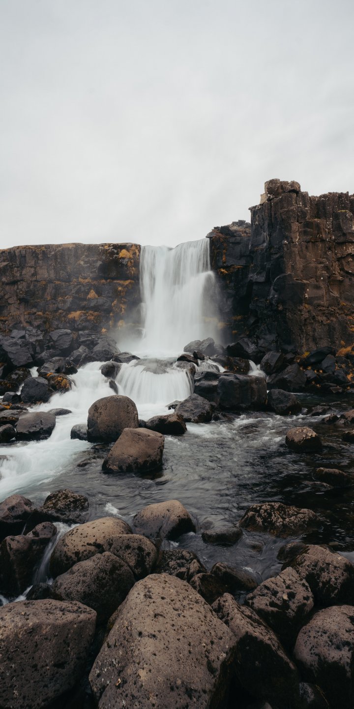 Обои: Исландия, водопад, камни - 720x1440