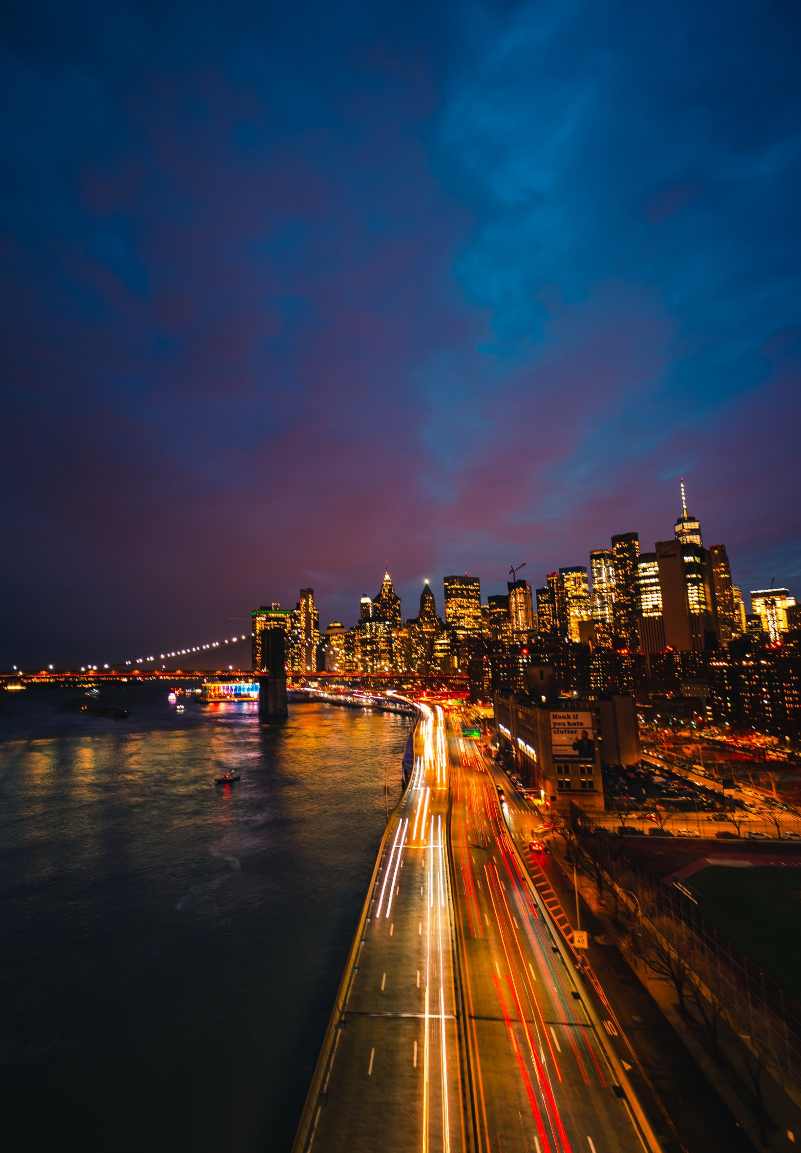 Бруклинский мост, Нью-Йорк, ночной город