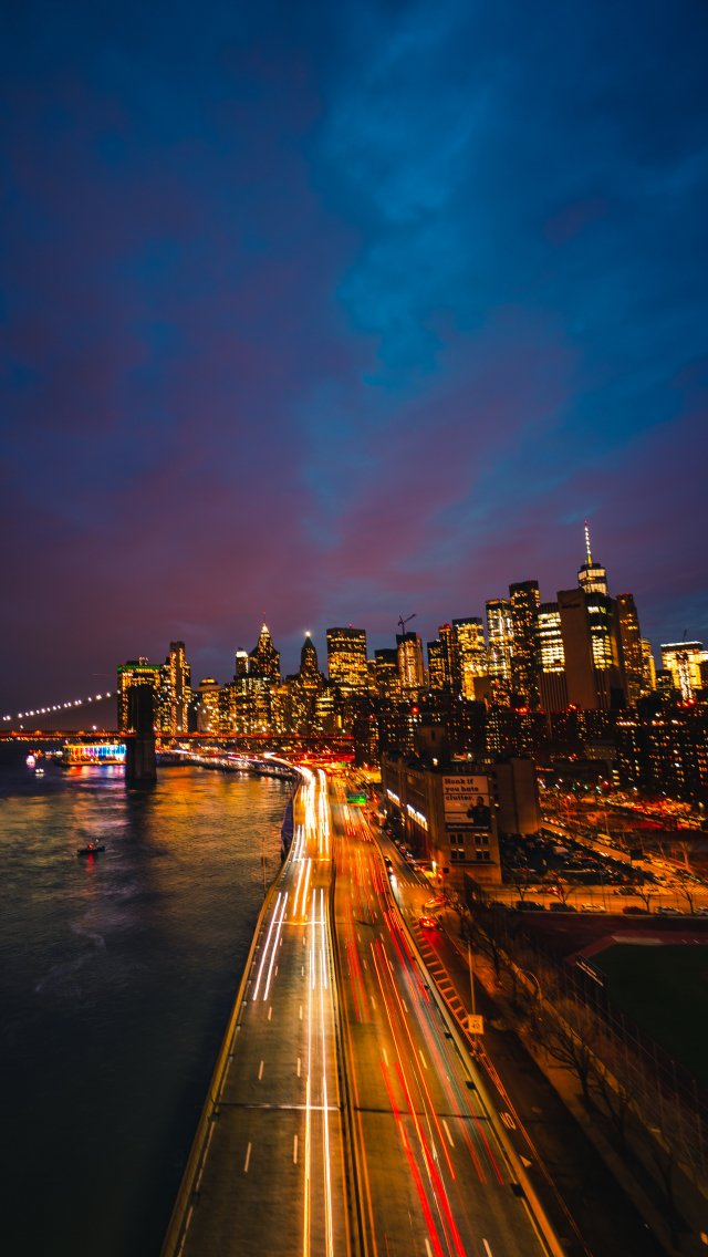 Обои: шоссе, ночной город, мегаполис - 640x1136
