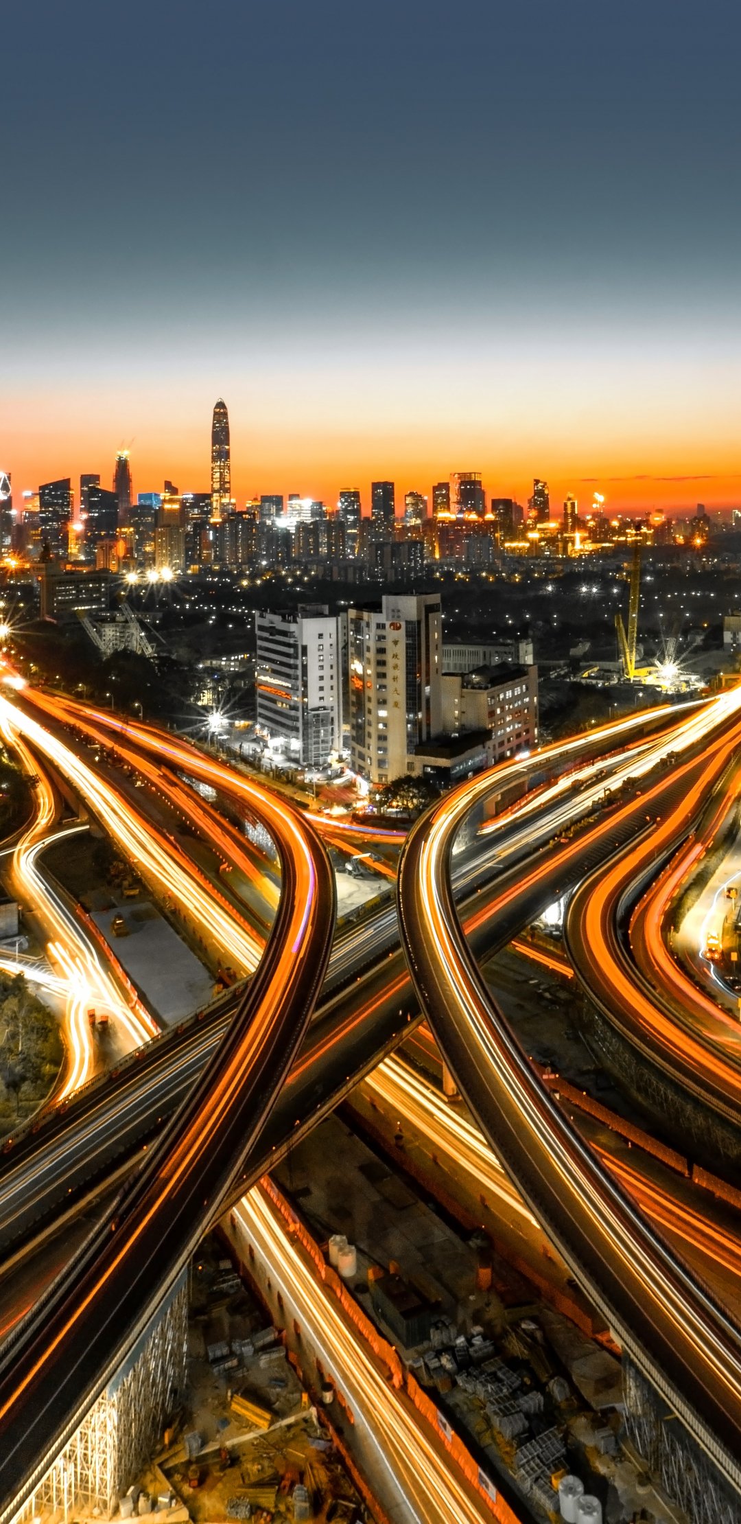 Обои: вид с высоты птичьего полета, ночной город - 1080x2220