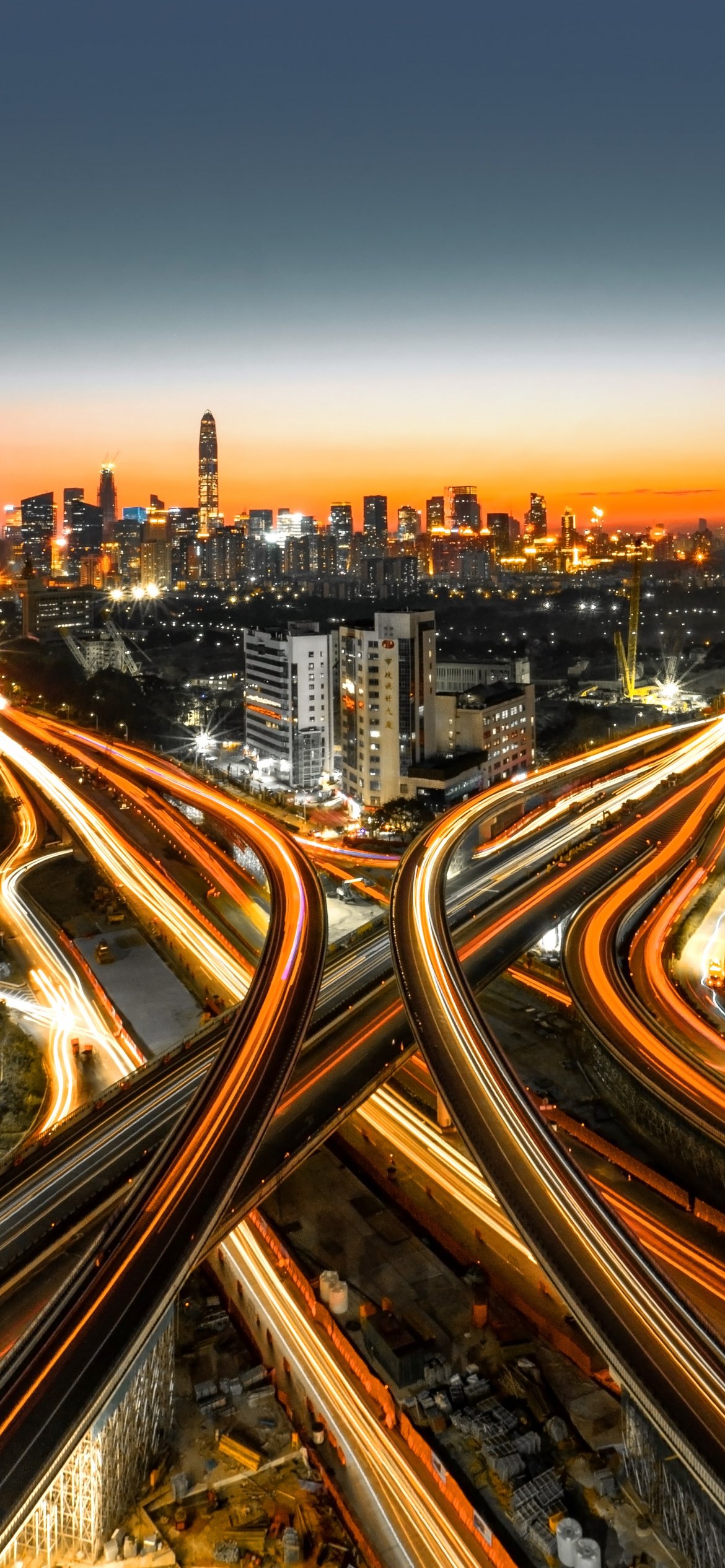 Обои: вид с высоты птичьего полета, ночной город - 1170x2532