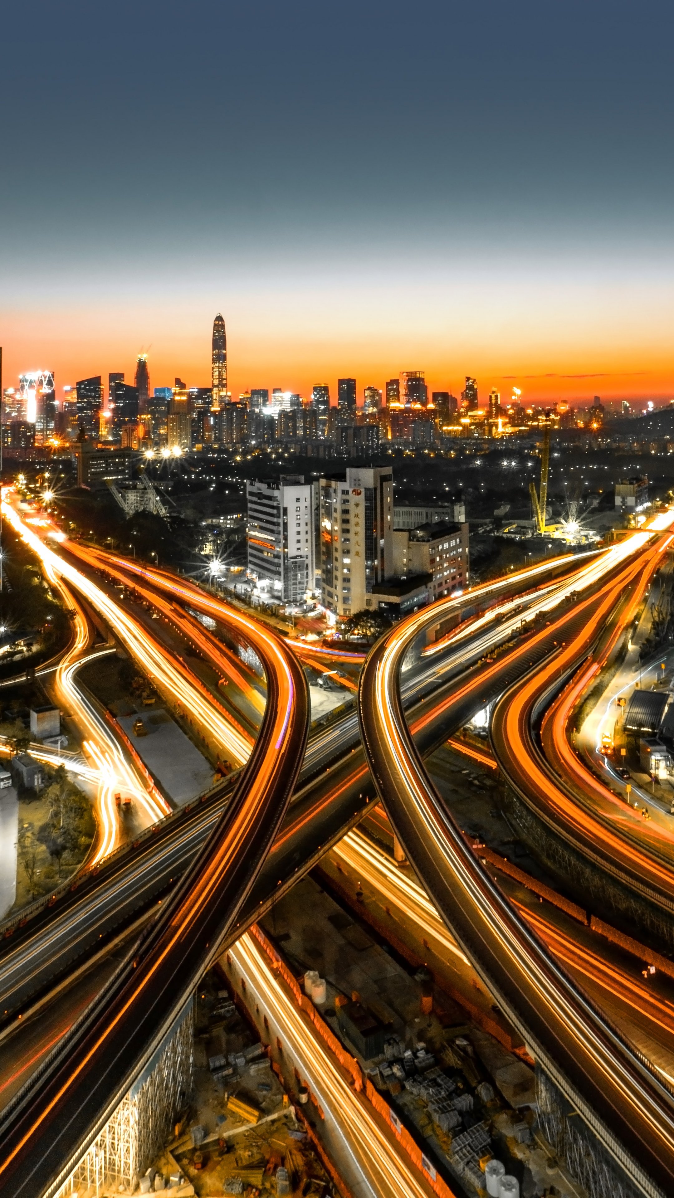 Обои: вид с высоты птичьего полета, ночной город - 2160x3840