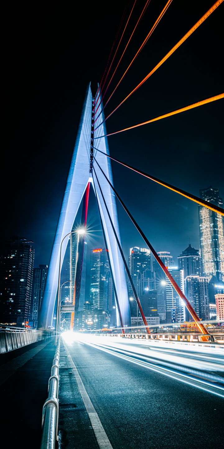 Обои: мост, дорога, ночной город - 720x1440