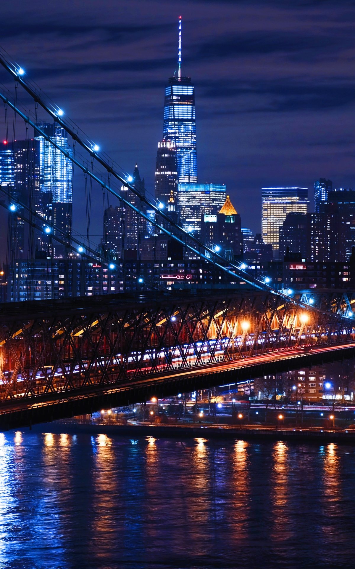 Обои: Бруклинский мост, Нью-Йорк, ночной город - 1200x1920