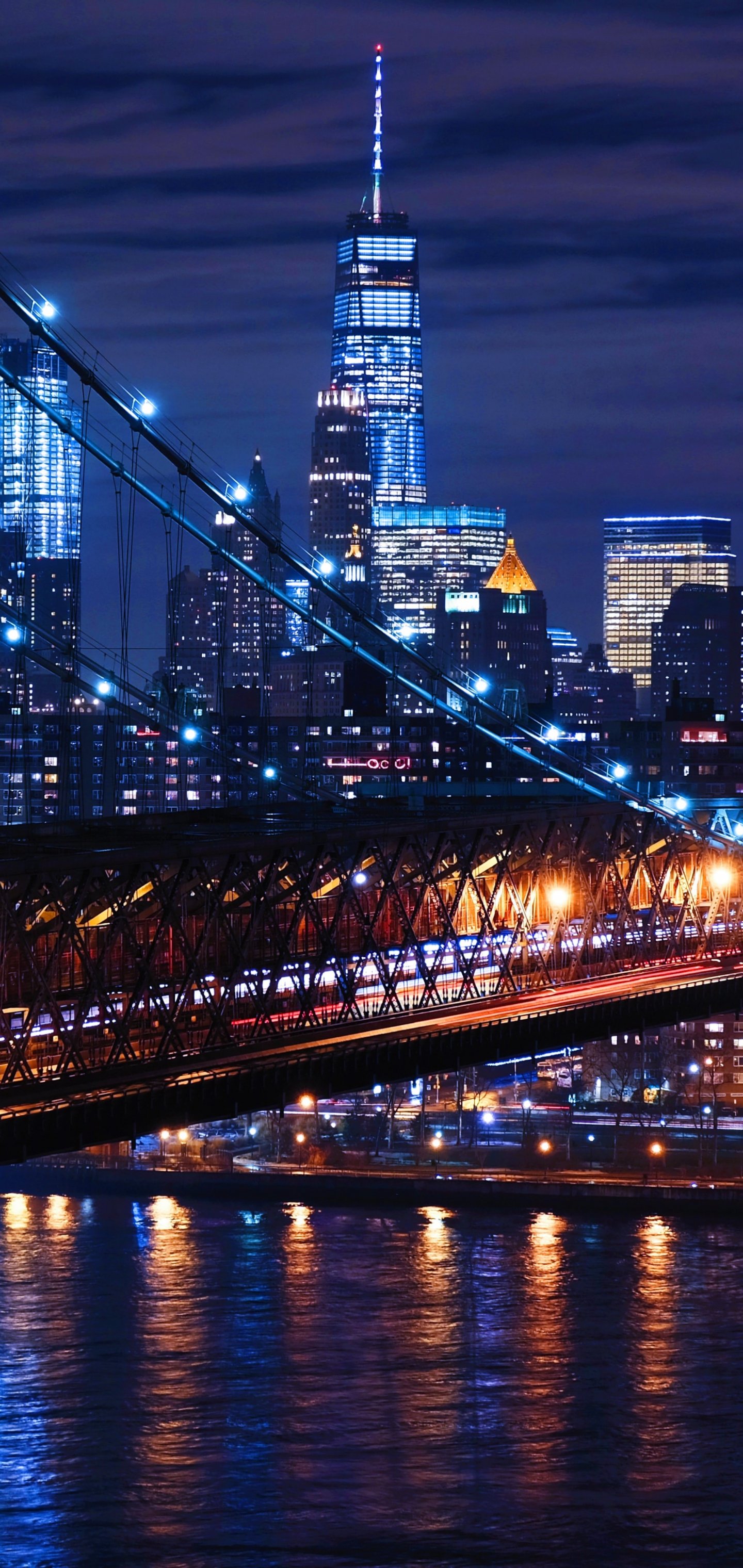 Обои: Бруклинский мост, Нью-Йорк, ночной город - 1440x3040
