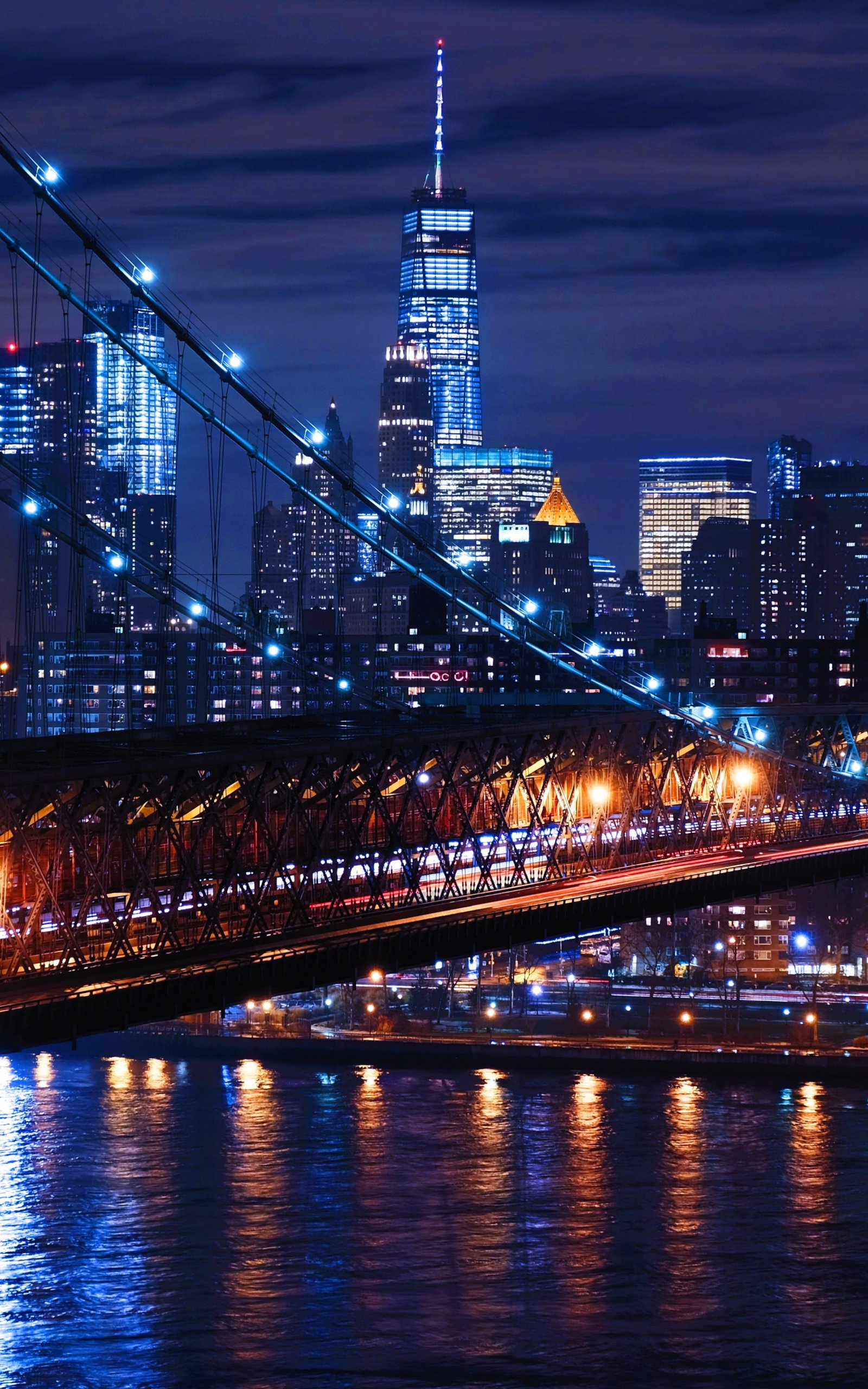 Обои: Бруклинский мост, Нью-Йорк, ночной город - 1600x2560