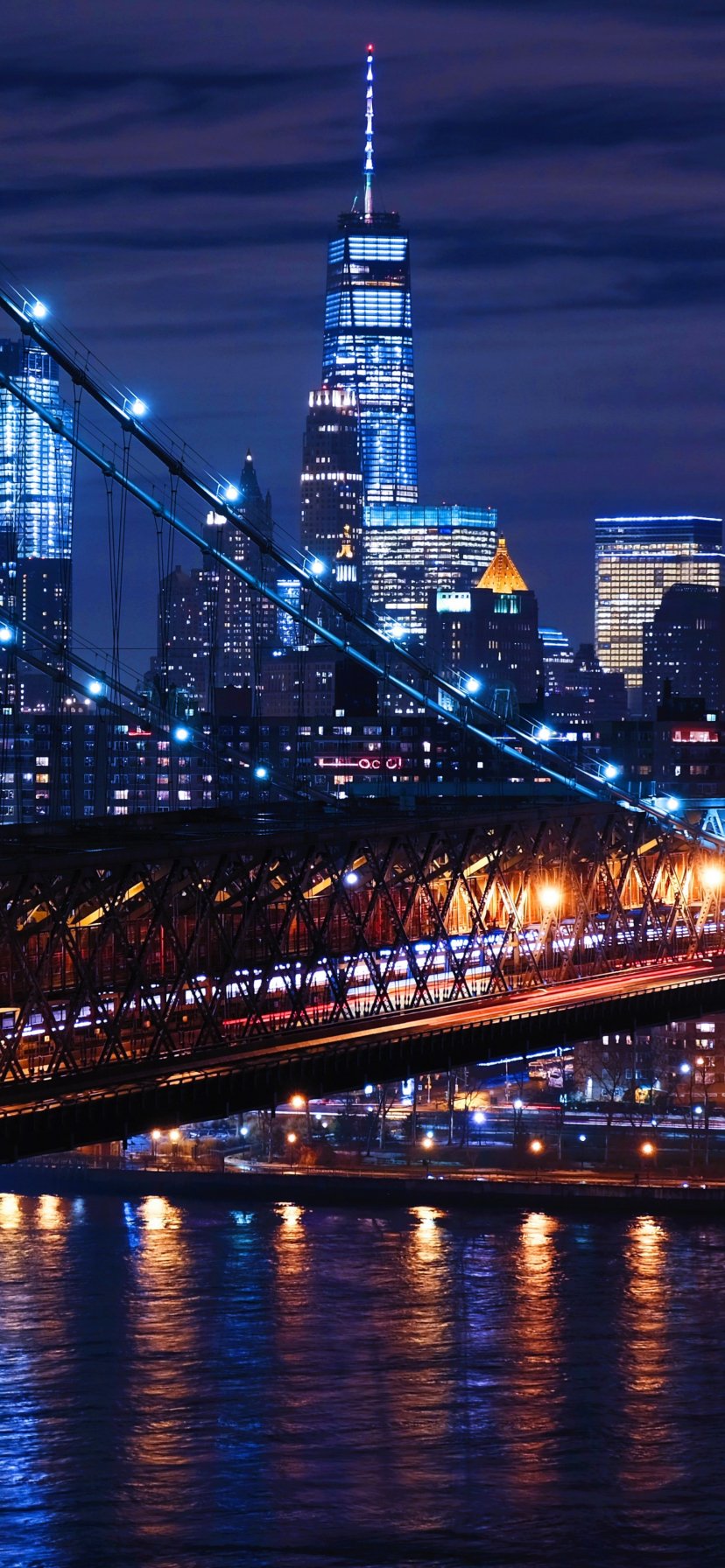 Обои: Бруклинский мост, Нью-Йорк, ночной город - 828x1792