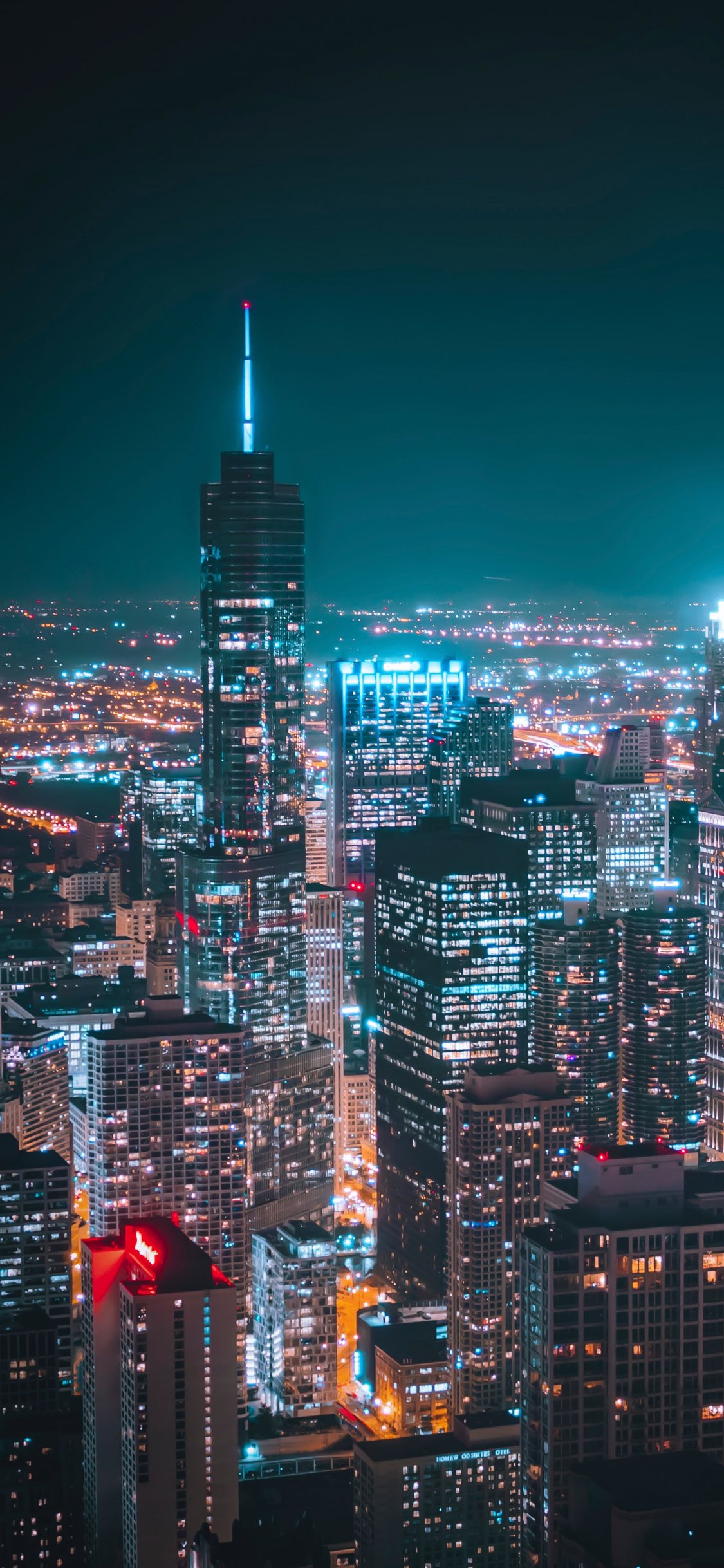 Обои: Чикаго, США, ночной город - 1125x2436