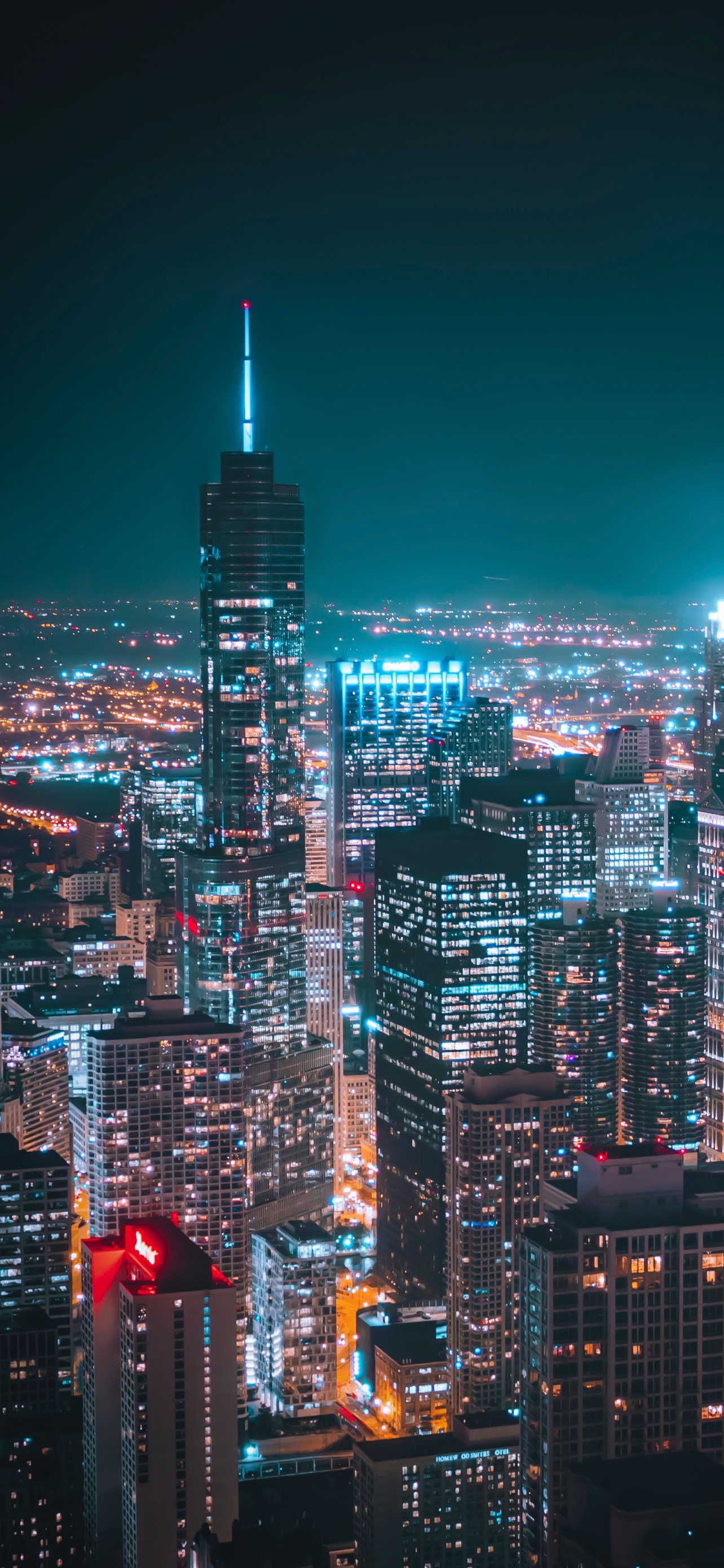 Обои: Чикаго, США, ночной город - 1284x2778