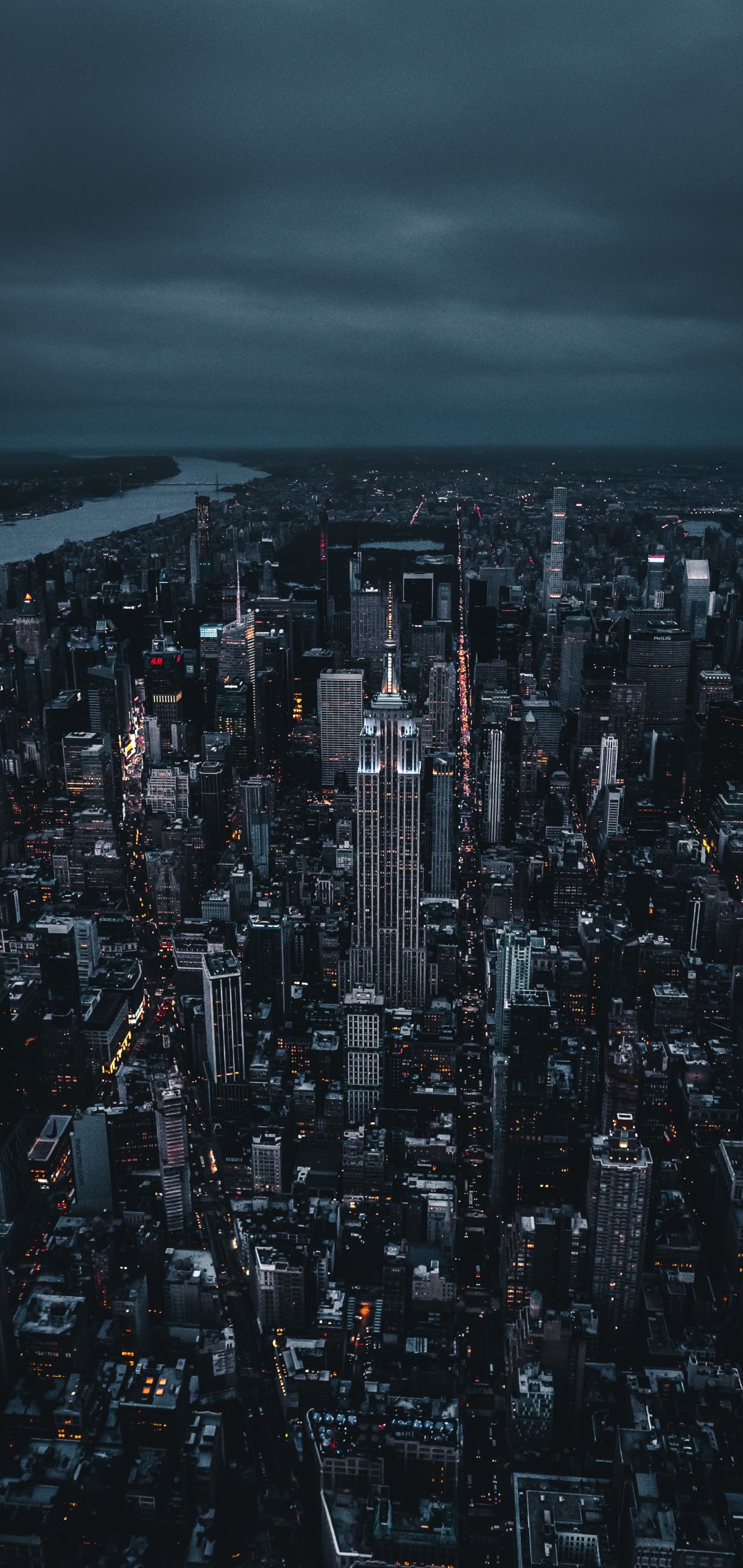 Обои: Нью-Йорк, вид с высоты птичьего полета, ночной город - 1080x2280