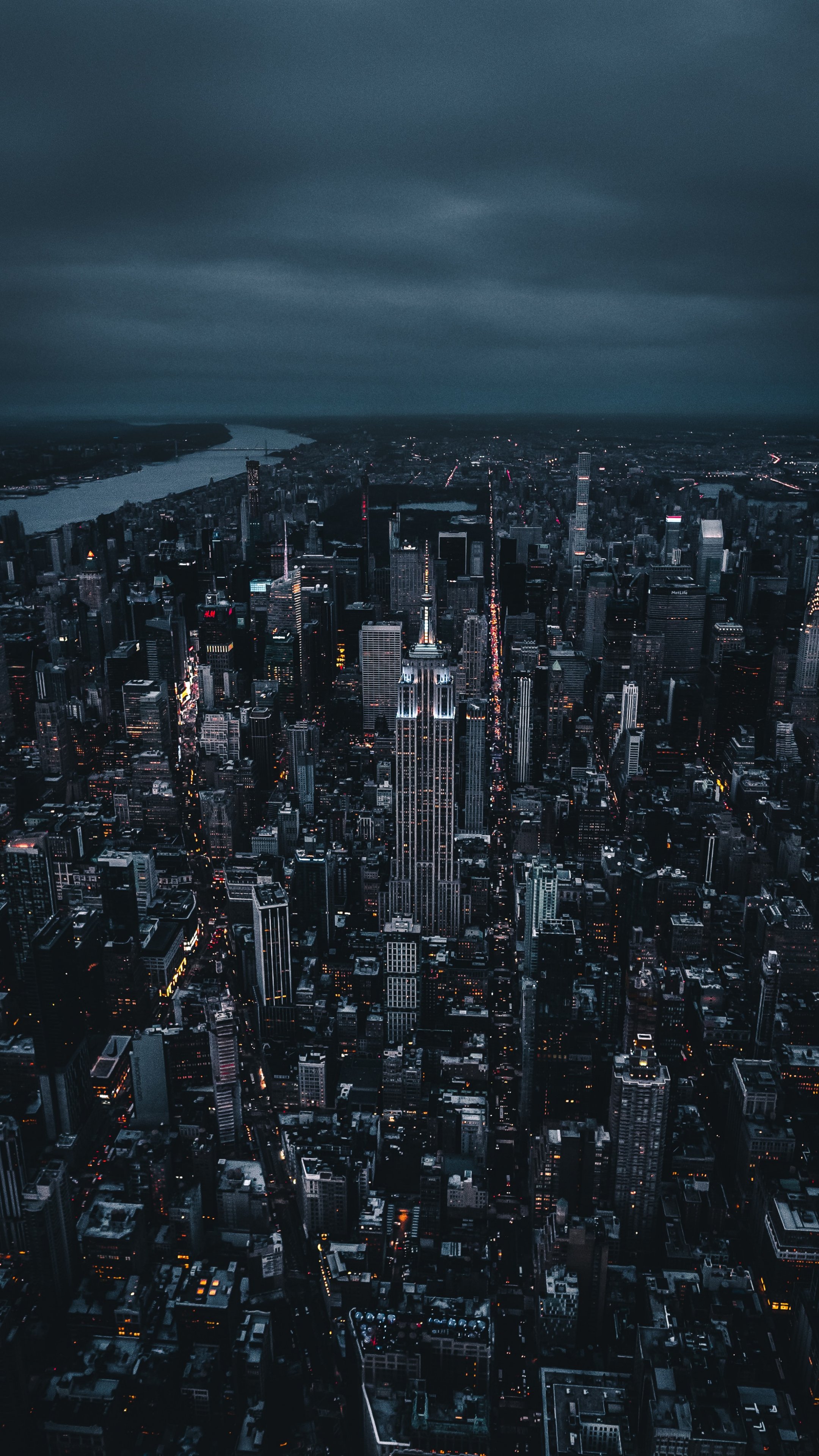 Обои: Нью-Йорк, вид с высоты птичьего полета, ночной город - 2160x3840