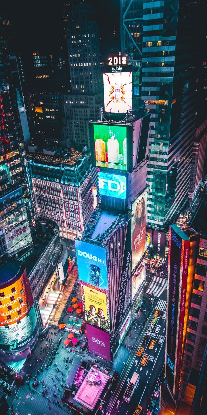 Обои: Таймс-Сквер, Нью-Йорк, вид с высоты птичьего полета - 720x1440