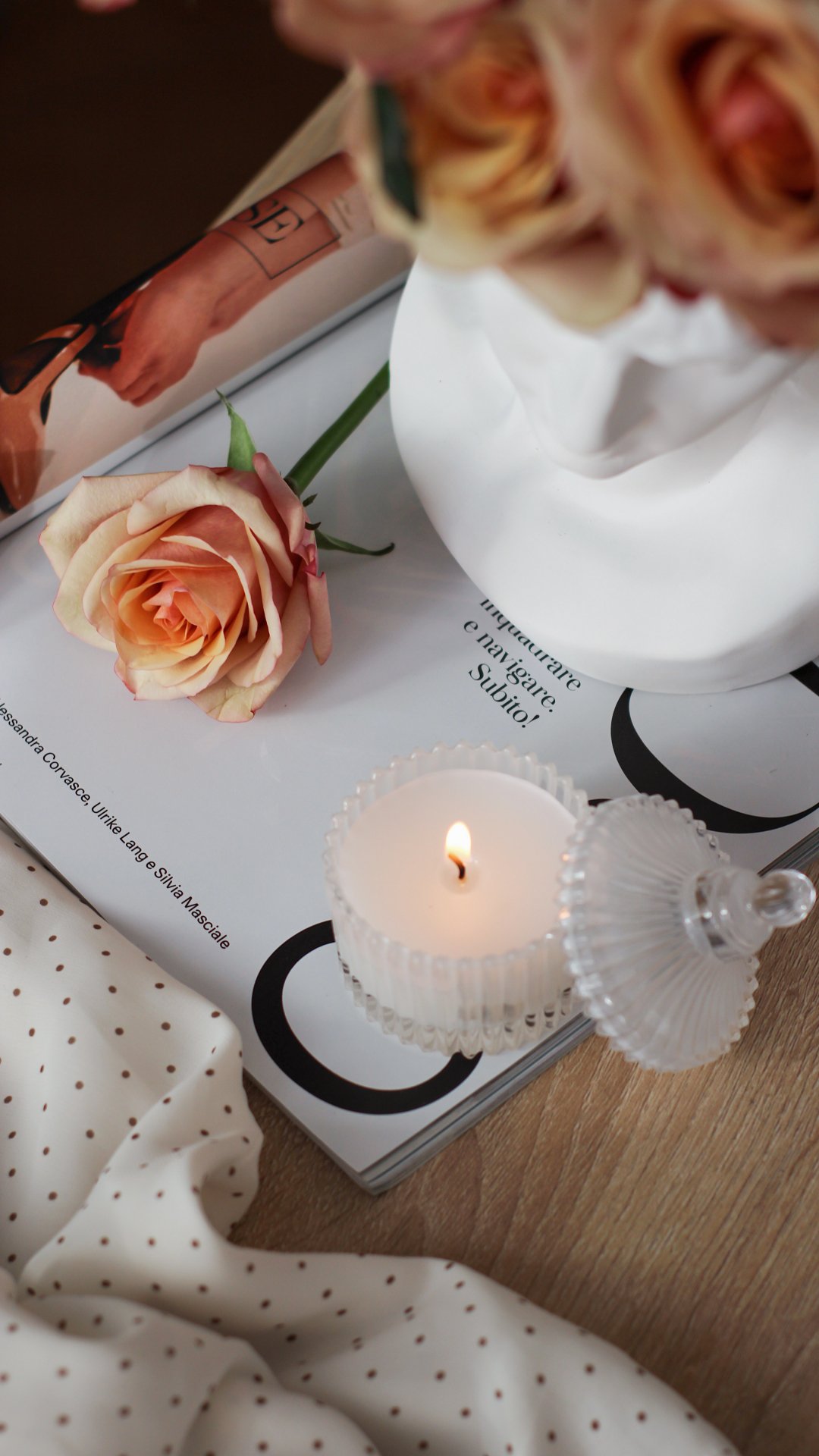 Обои: эстетика, свеча, розовая роза - 1080x1920