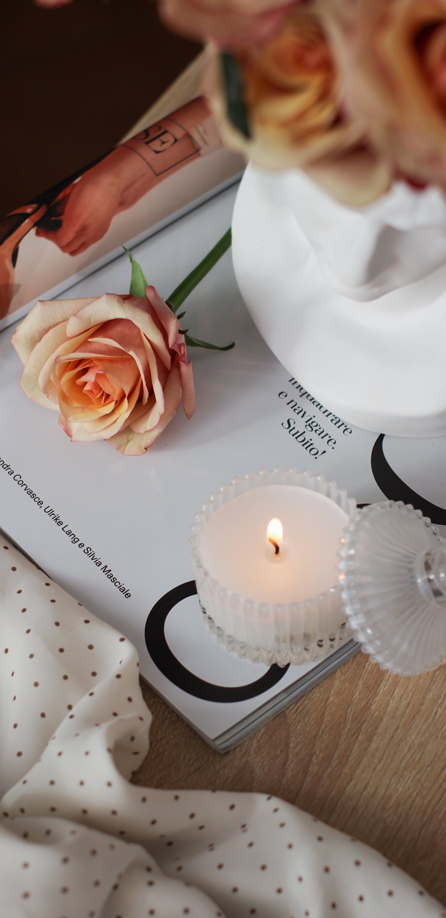 Обои: эстетика, свеча, розовая роза - 1440x2960