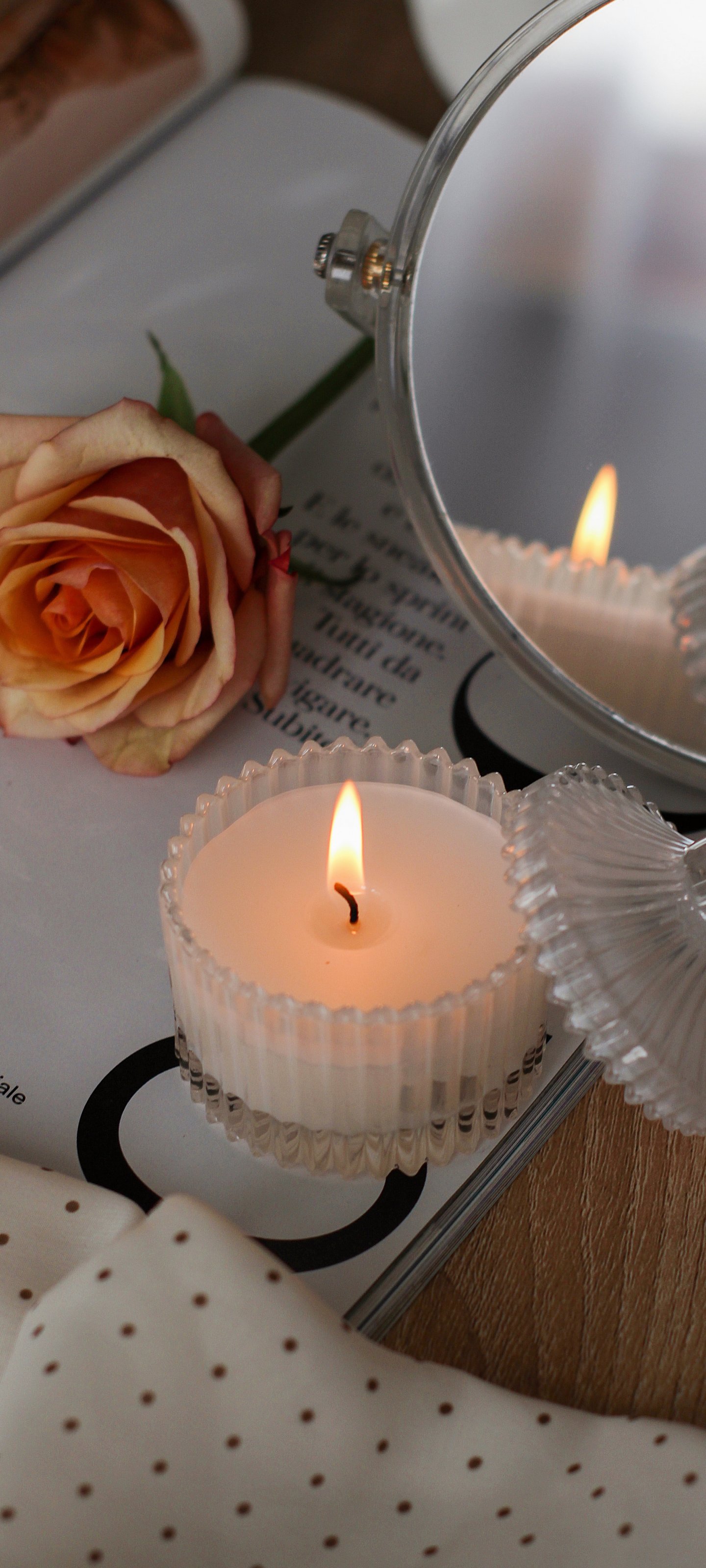 Обои: розовая роза, свеча, эстетика - 1440x3200