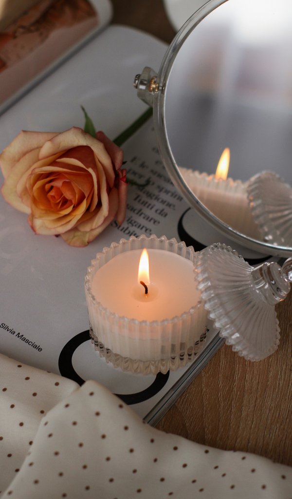 Обои: розовая роза, свеча, эстетика - 600x1024