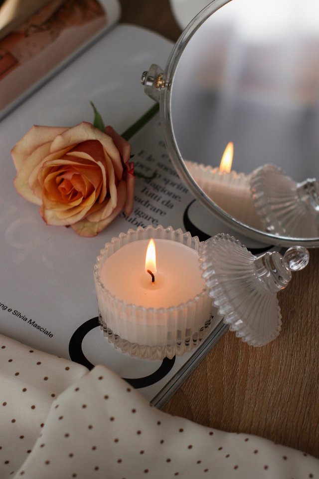 Обои: розовая роза, свеча, эстетика - 640x960